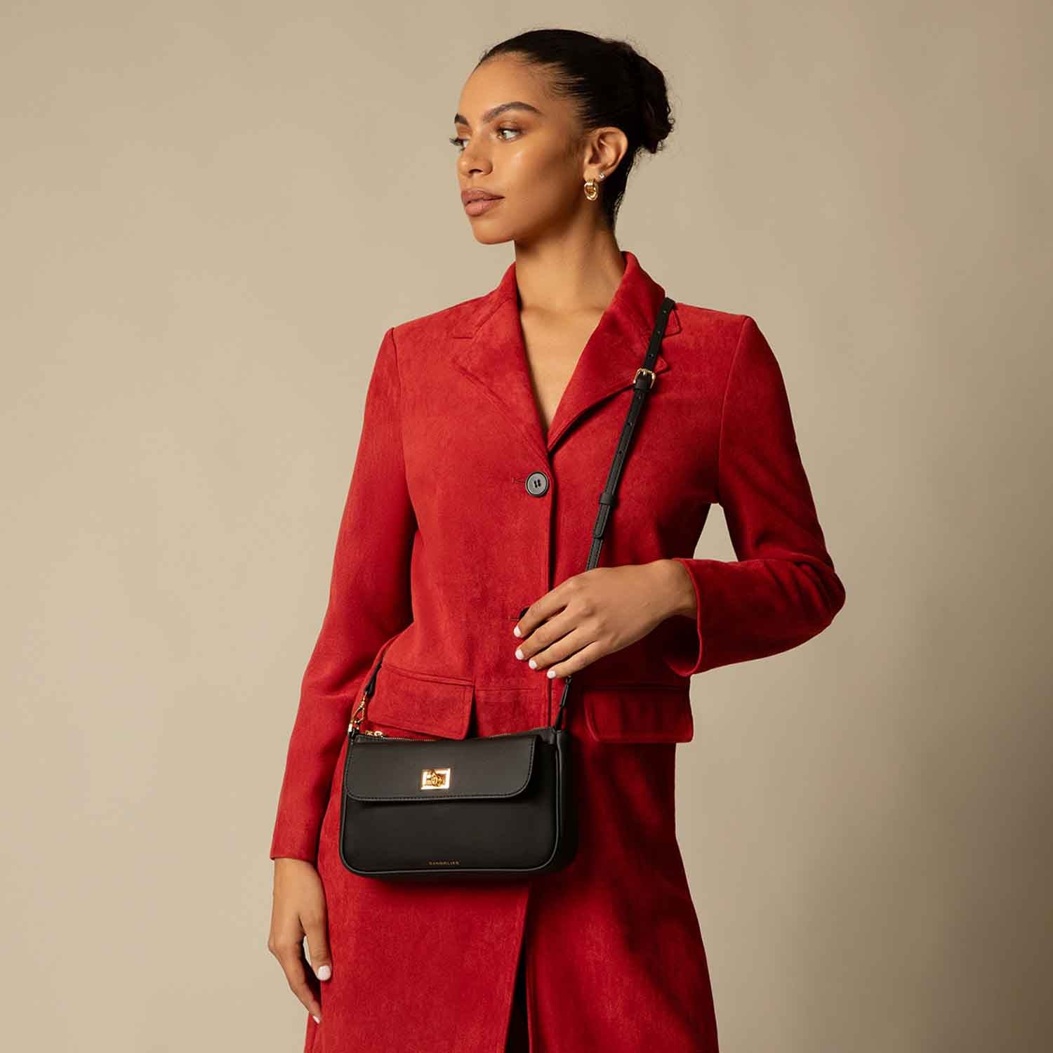 Crafted from smooth, premium leather with gold hardware, the Taylor Bag features a dedicated front phone pocket with a secure turn-lock closure, keeping your most important essential secure and close at hand. Its soft, elegant silhouette includes two interchangeable straps—crossbody or shoulder—so you can carry it your way.
