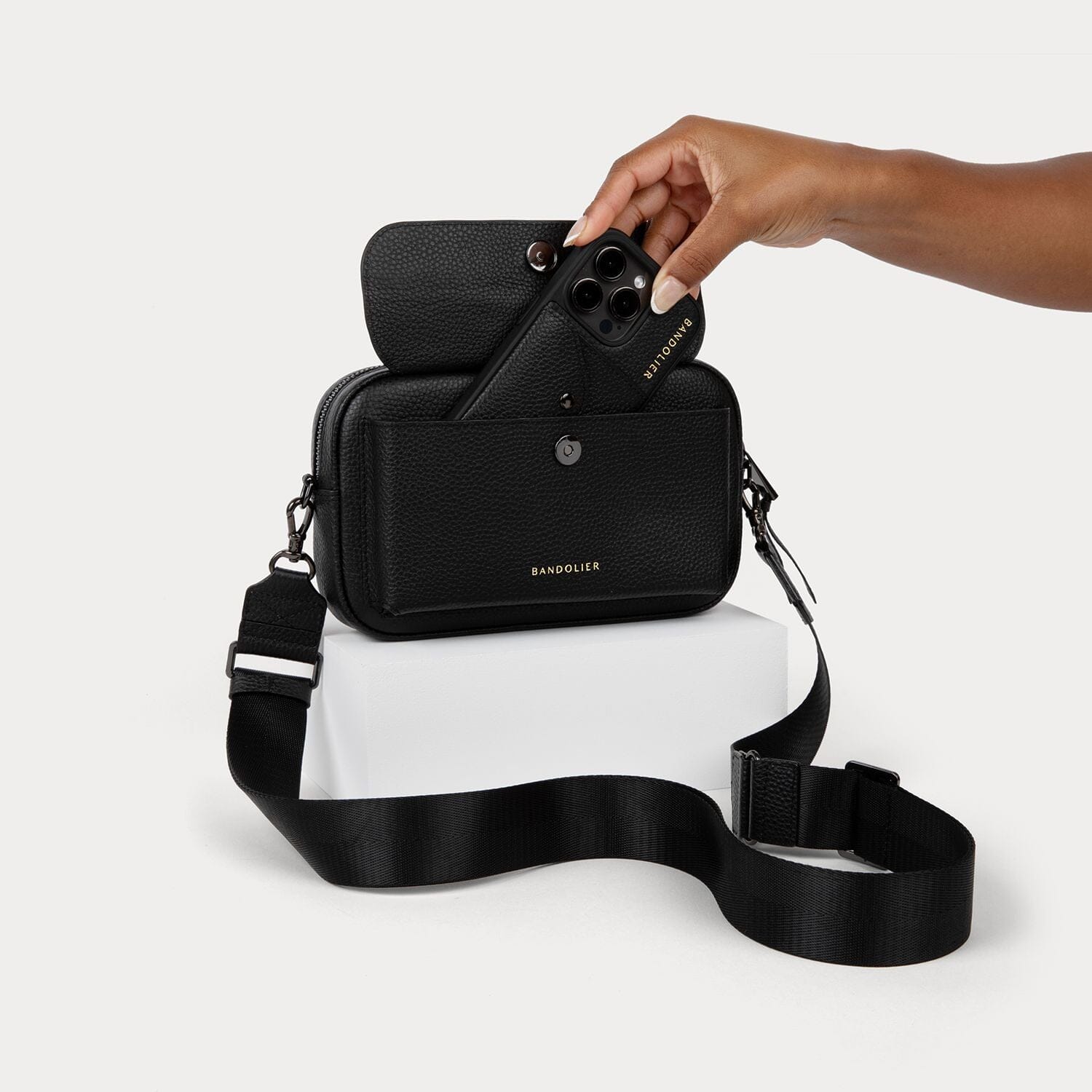 Top Grain Leather Crossbody Bag in Black/Pewter