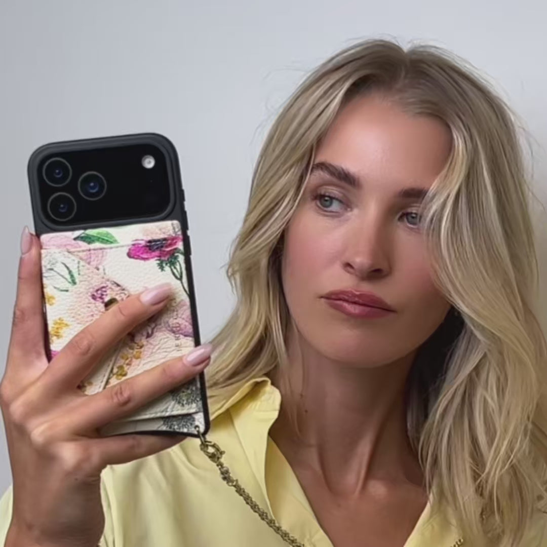 Our limited-edition capsule collection with Designer, Ceci Johnson of Ceci New York, featuring her iconic, romantic hand painted design floral prints on our signature top grain leather accessories. Crafted with a rich blend of authentic ivory floral print, detachable crossbody strap and wristlet provides a discrete way to carry your phone, cash and cards while on the go.