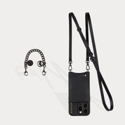 Meet the all new Charm Wristlet Set. The first-ever genuine leather luxury set crafted to triple your hands-free space in two minimalist pieces. Our Emma, crafted with a rich blend of our authentic classic black top grain leather plus our best selling charm wristlet with pewter hardware.