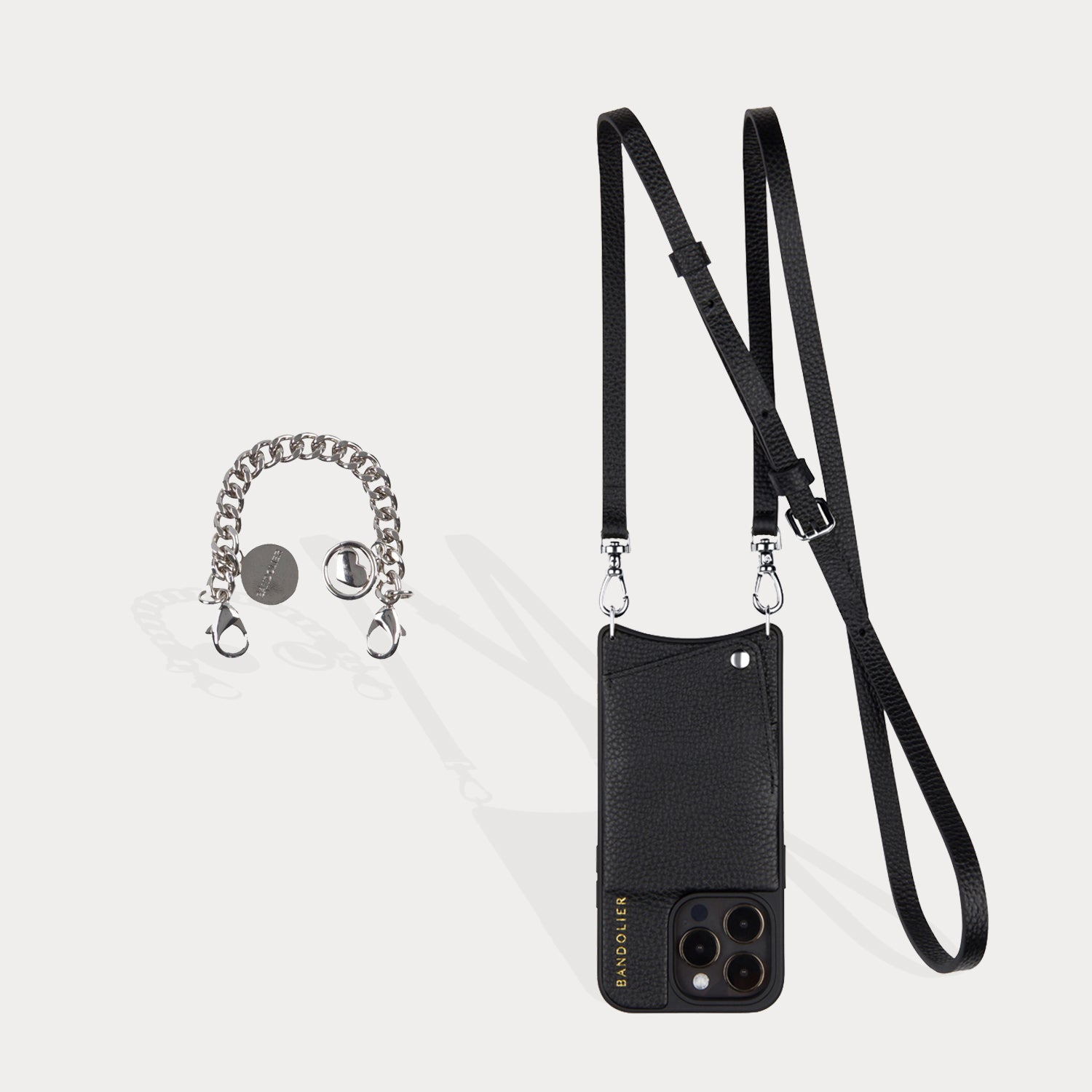Emma Crossbody and Charm Wristlet Set in Black/Silver