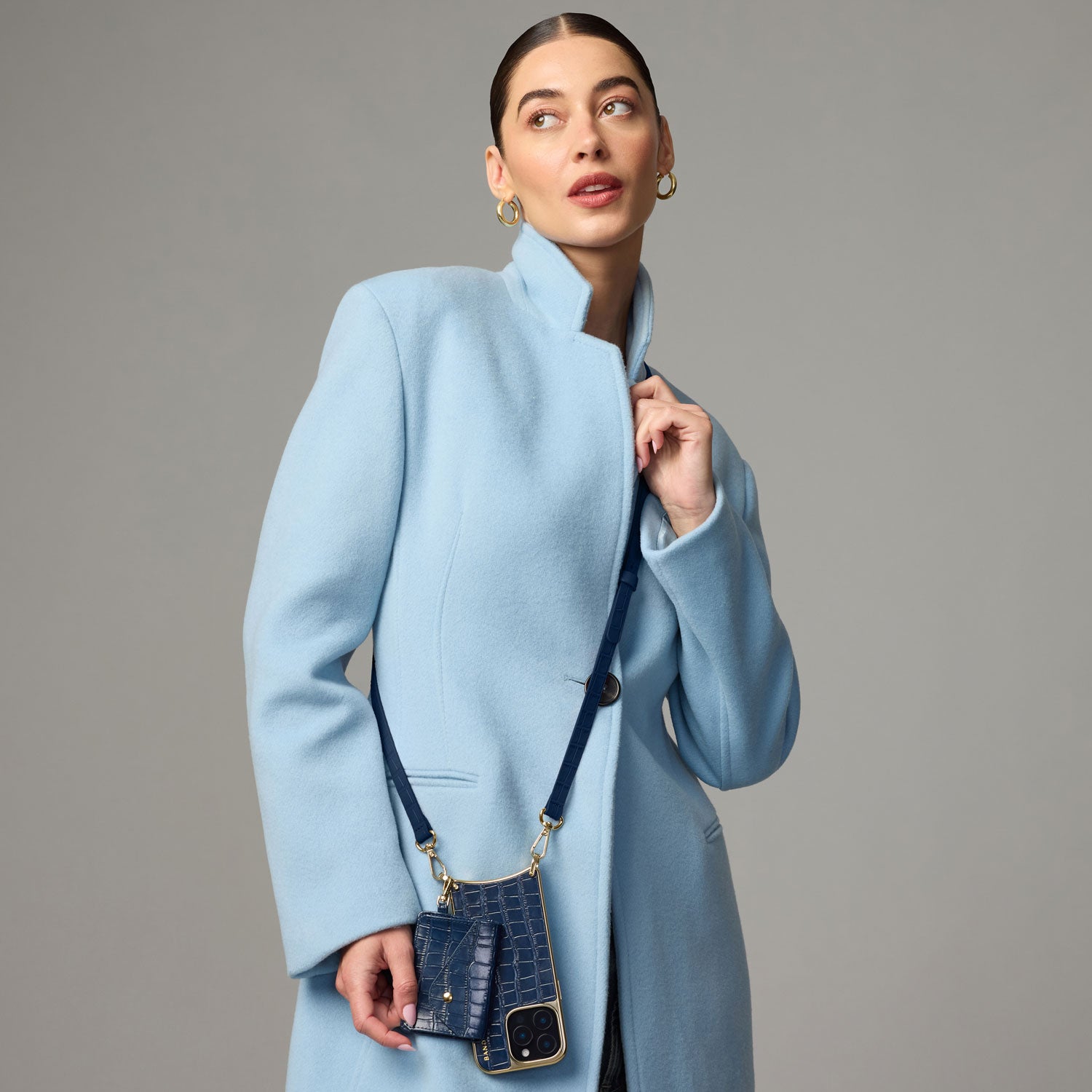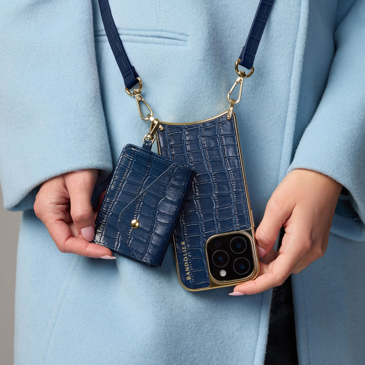 Magnet Wallet Crossbody Phone Case in Navy Croc/Gold