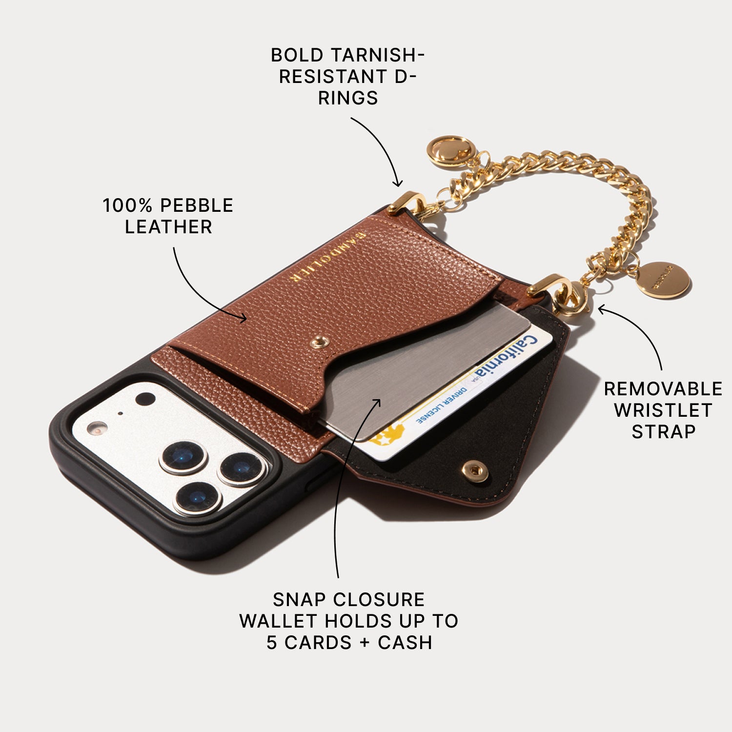 Wristlet Phone Case in Cognac/Gold