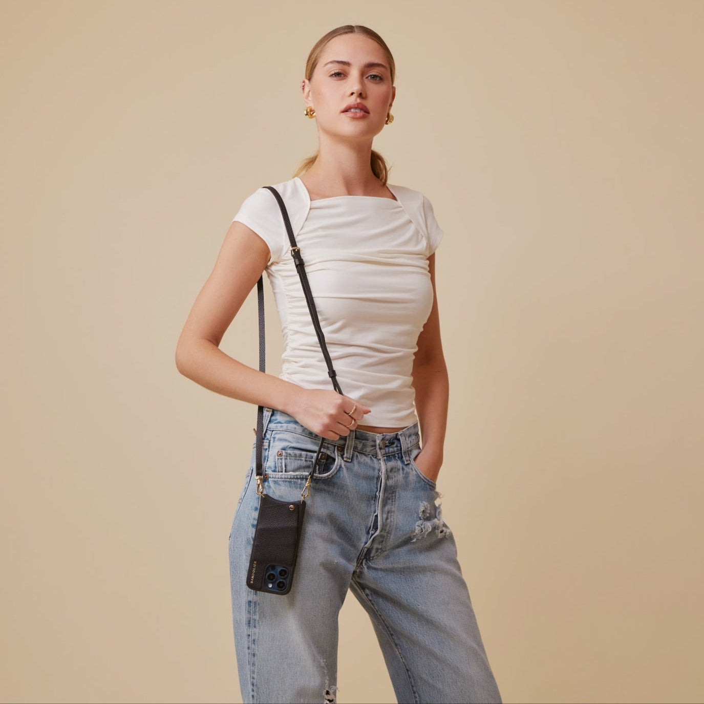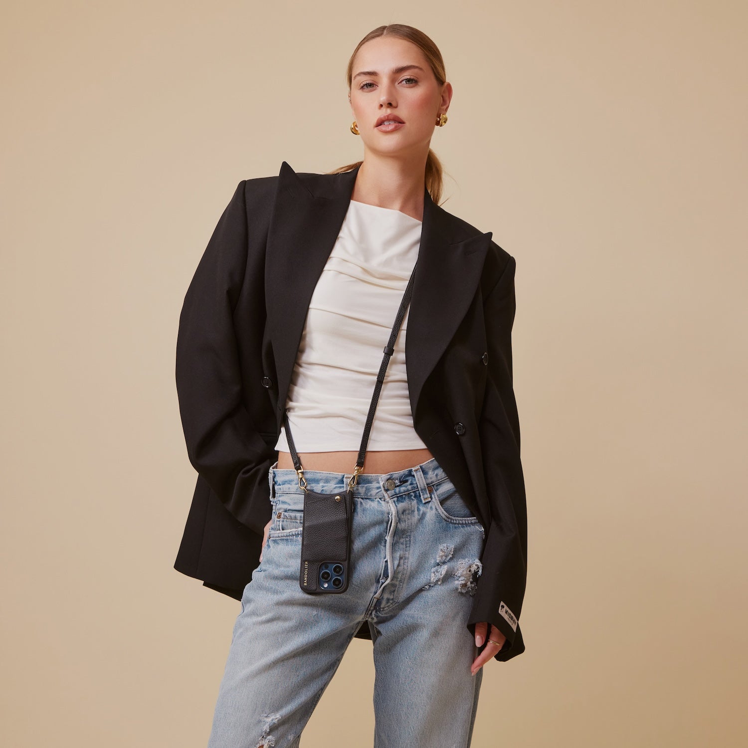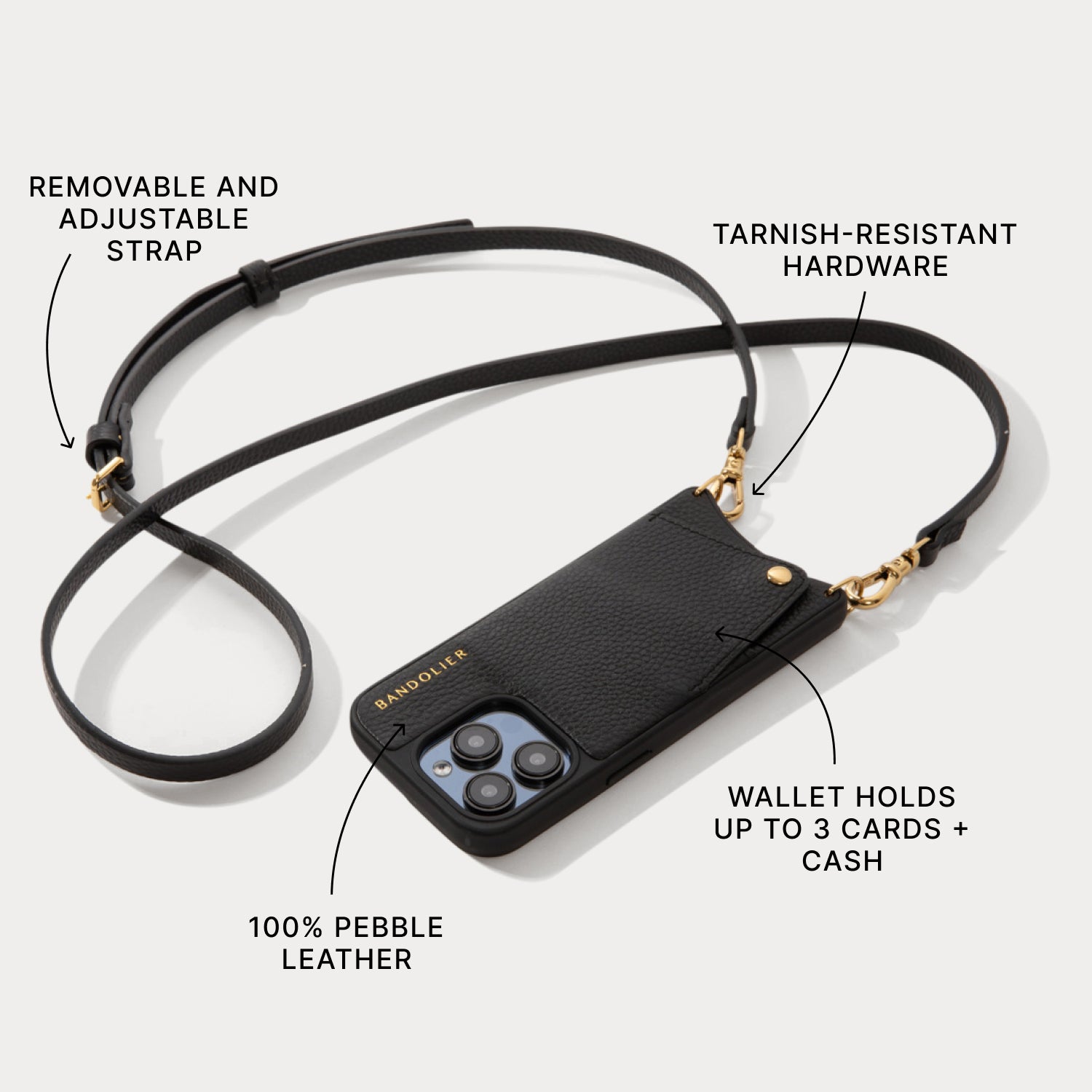 Crossbody Phone Case in Black/Gold