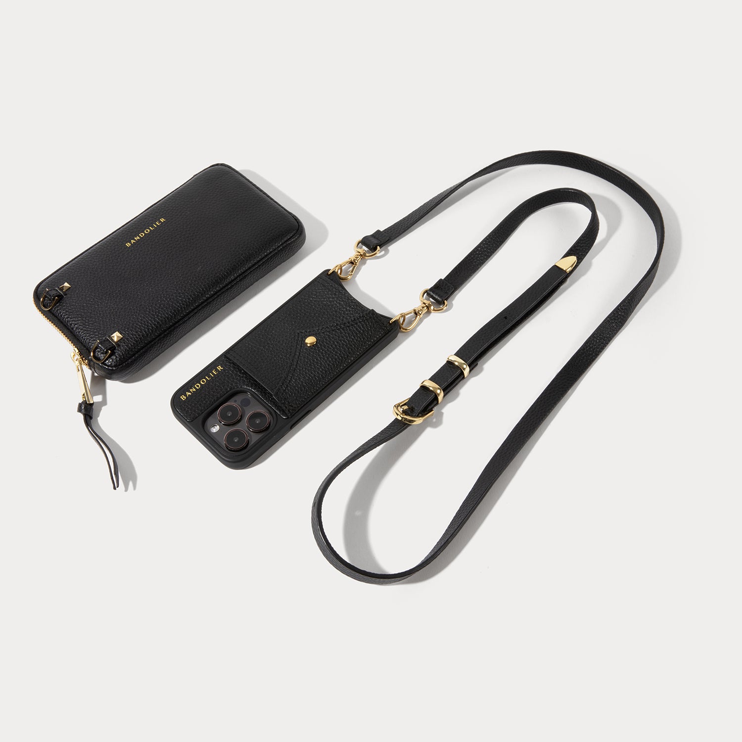 Crossbody iPhone Case and Expanded Pouch Set in Black/Gold