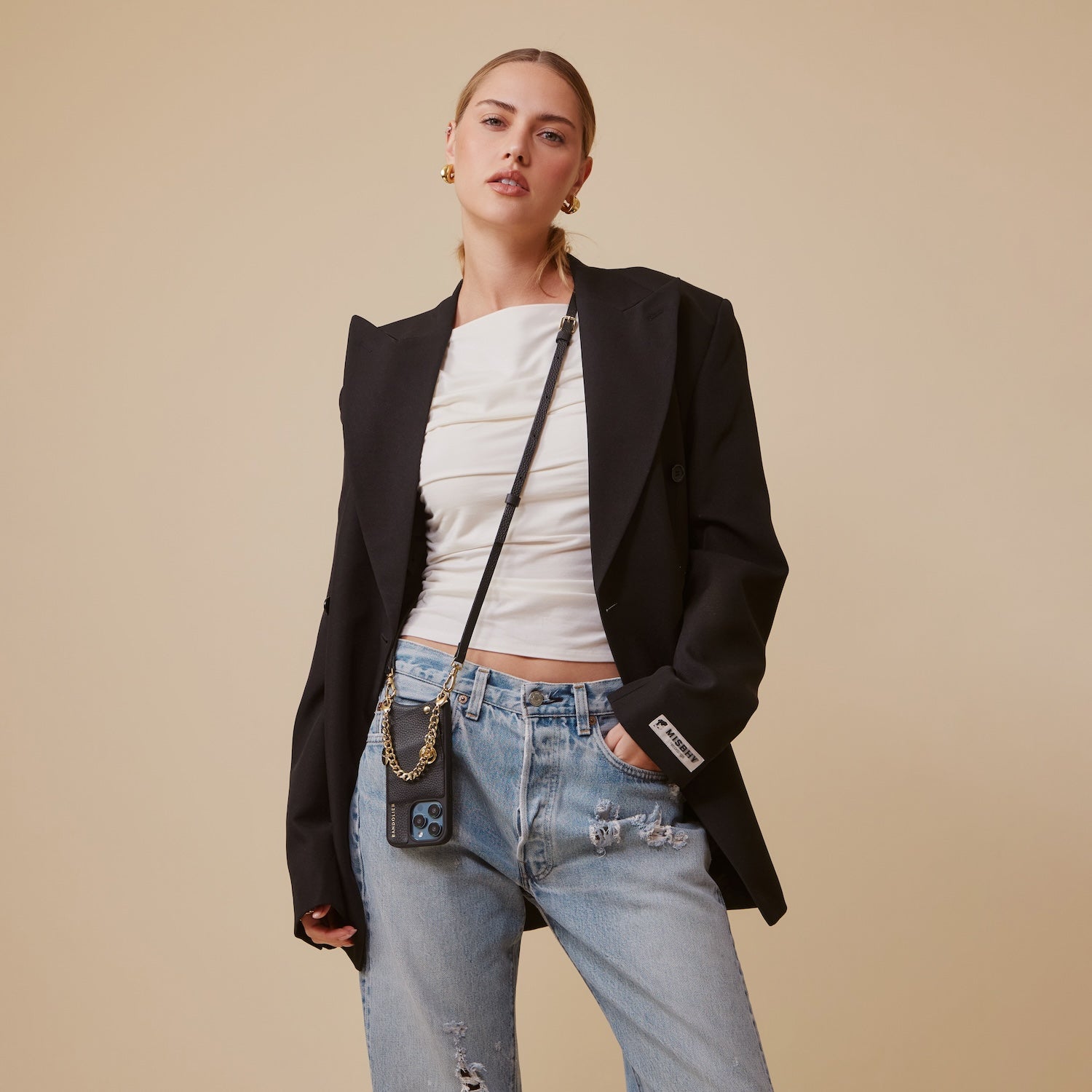 Emma Crossbody and Charm Wristlet Set in Black/Gold