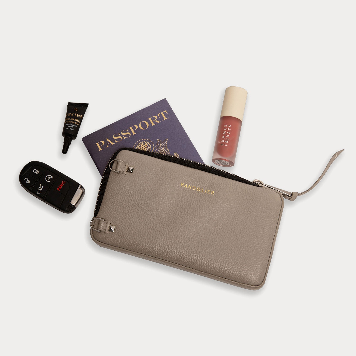 Crossbody and Expanded Pouch Set in Greige/Silver