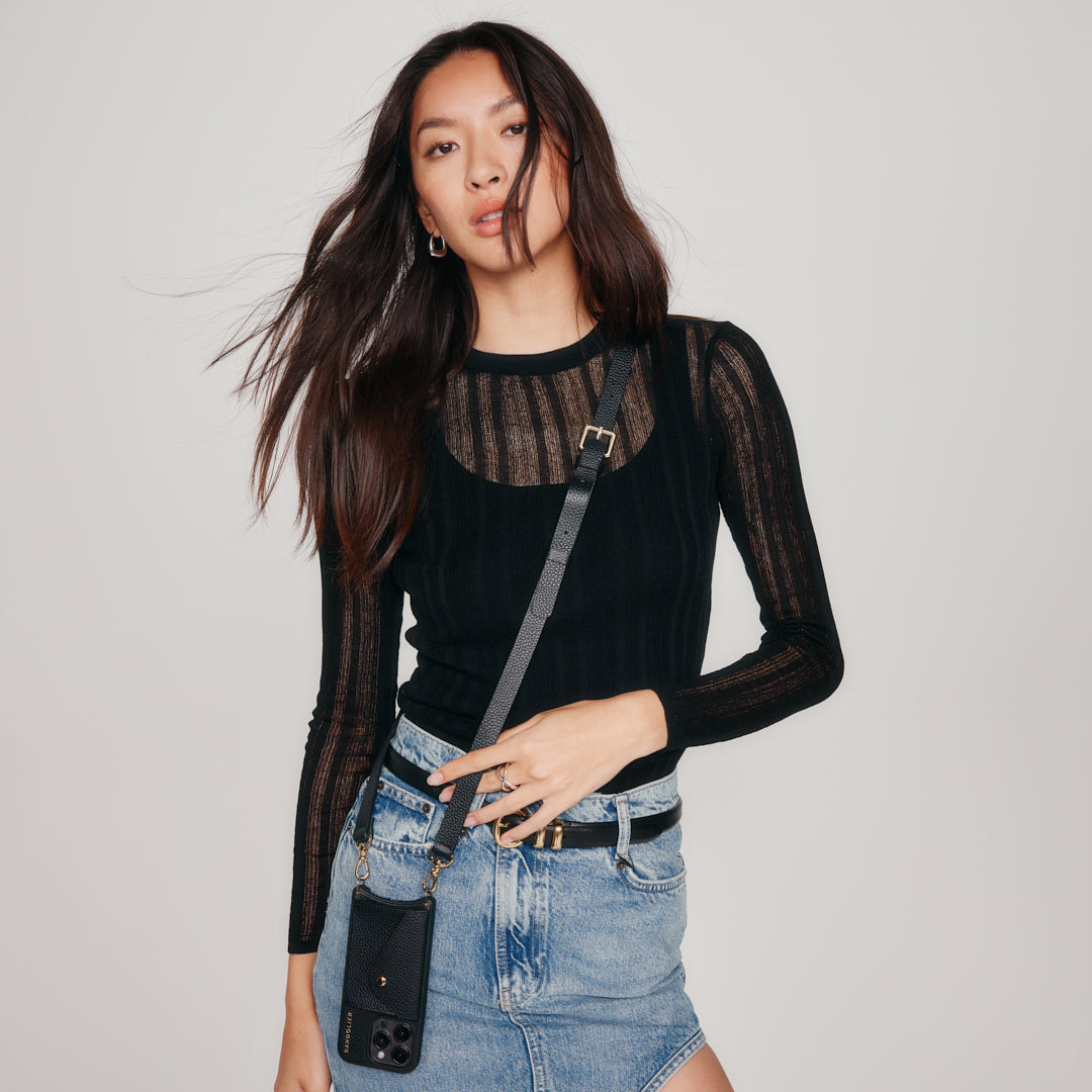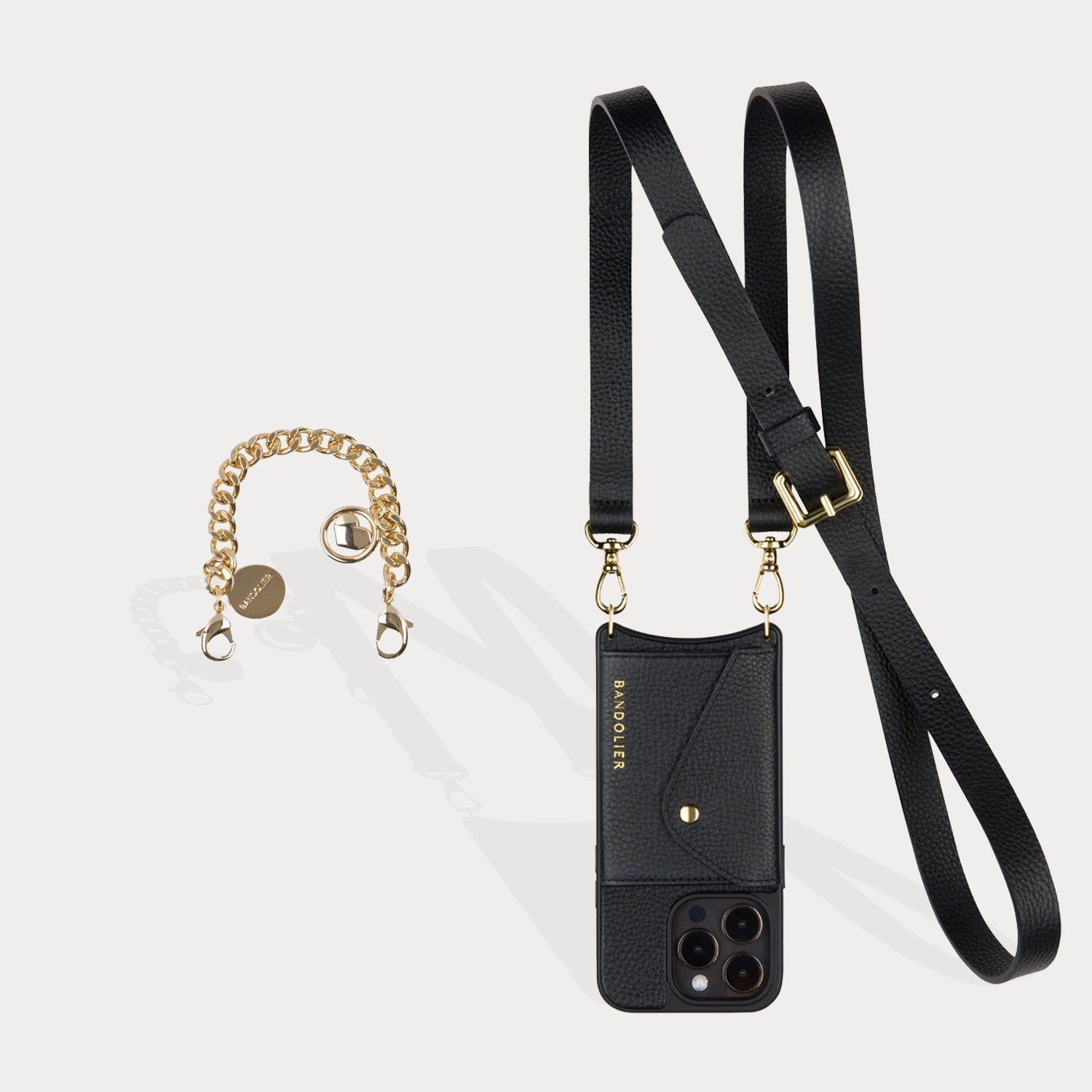 Meet the all new Charm Wristlet Set. The first-ever genuine leather luxury set crafted to triple your hands-free space in two minimalist pieces. Our Hailey, crafted with a rich blend of our authentic classic black top grain leather plus our best selling charm wristlet with vacuum gold hardware.