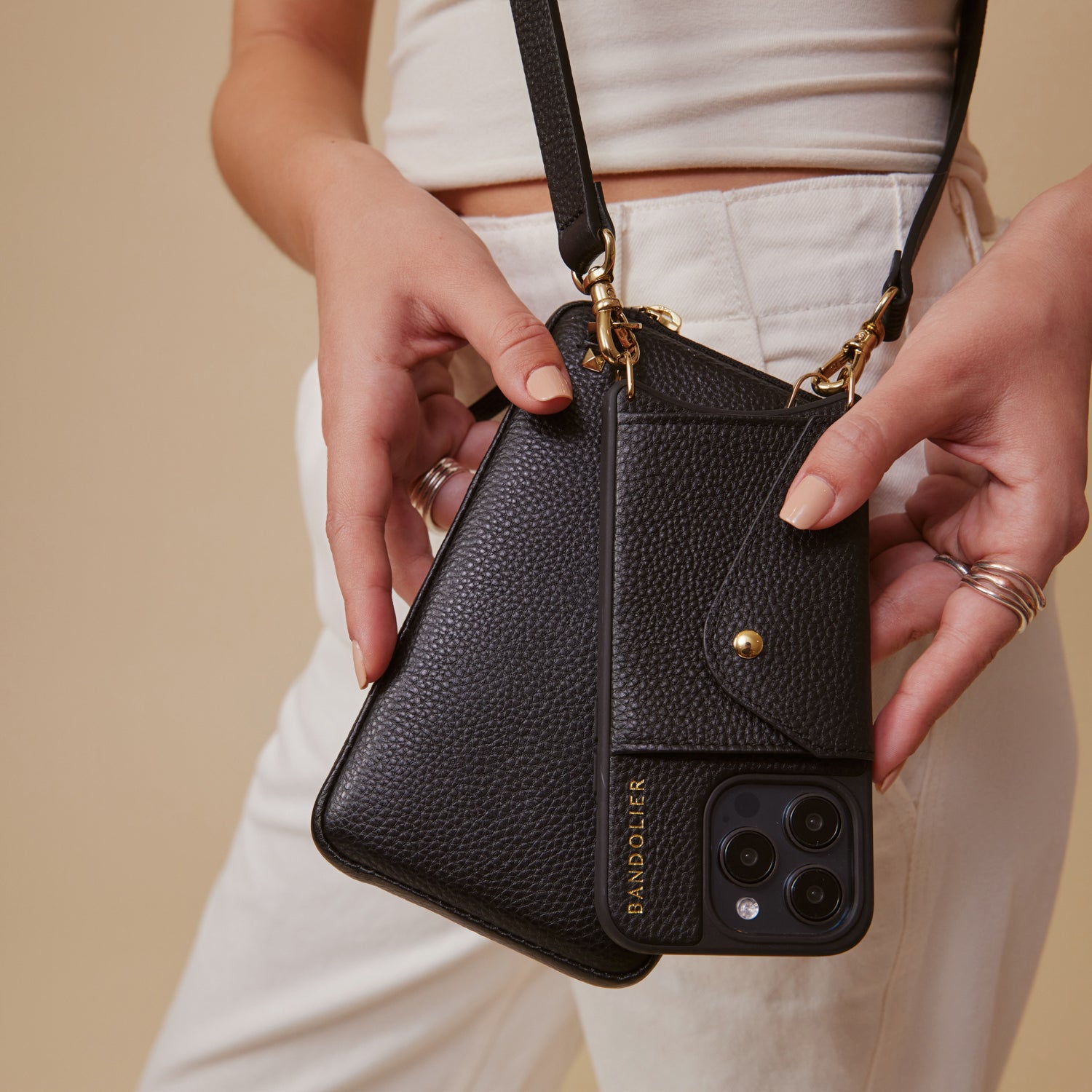 The first-ever genuine leather luxury set crafted to triple your hands-free space in two minimalist pieces. Store your sunglasses in our spacious expander pouch, add your go-to cards in her iPhone wallet pocket. Link them together to keep everything you need while on-the-go in one spot!
