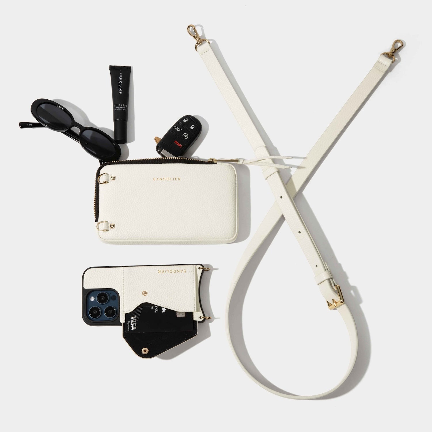 Crossbody and Expanded Pouch Set in Ivory/Gold
