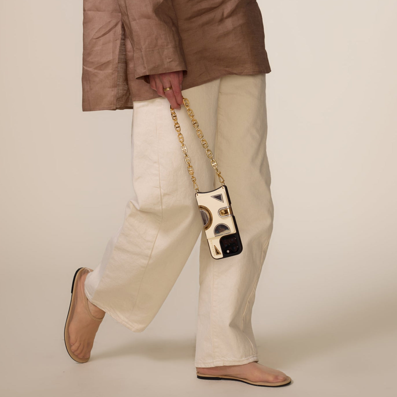Isla Wristlet Set with Expanded Pouch in Ivory/Gold