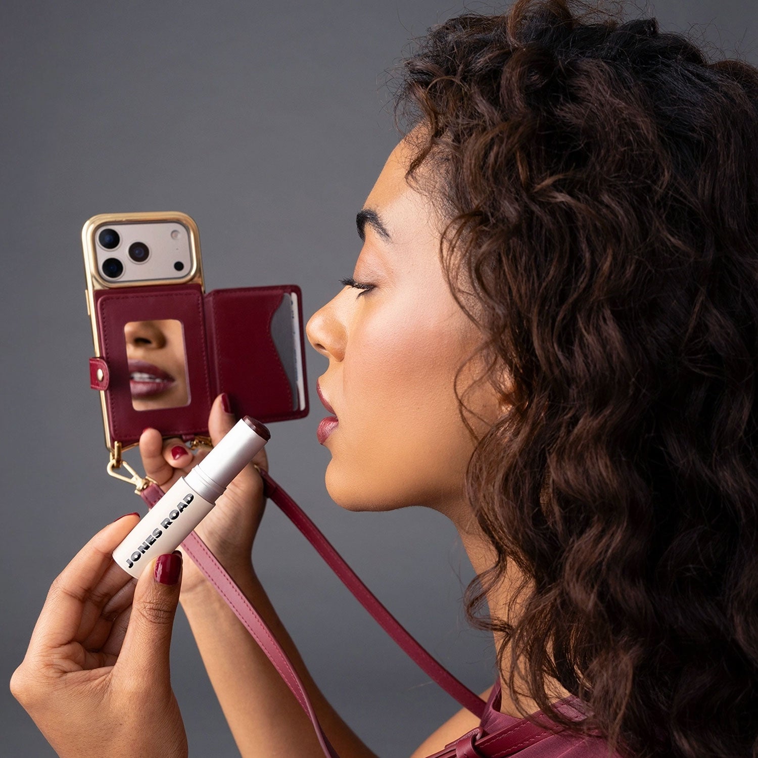 Magnet Wallet Crossbody Phone Case and Expanded Pouch Set in Cranberry/Gold