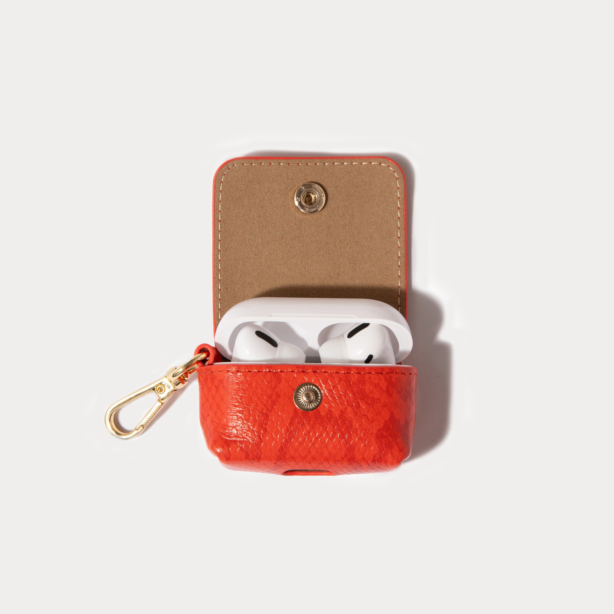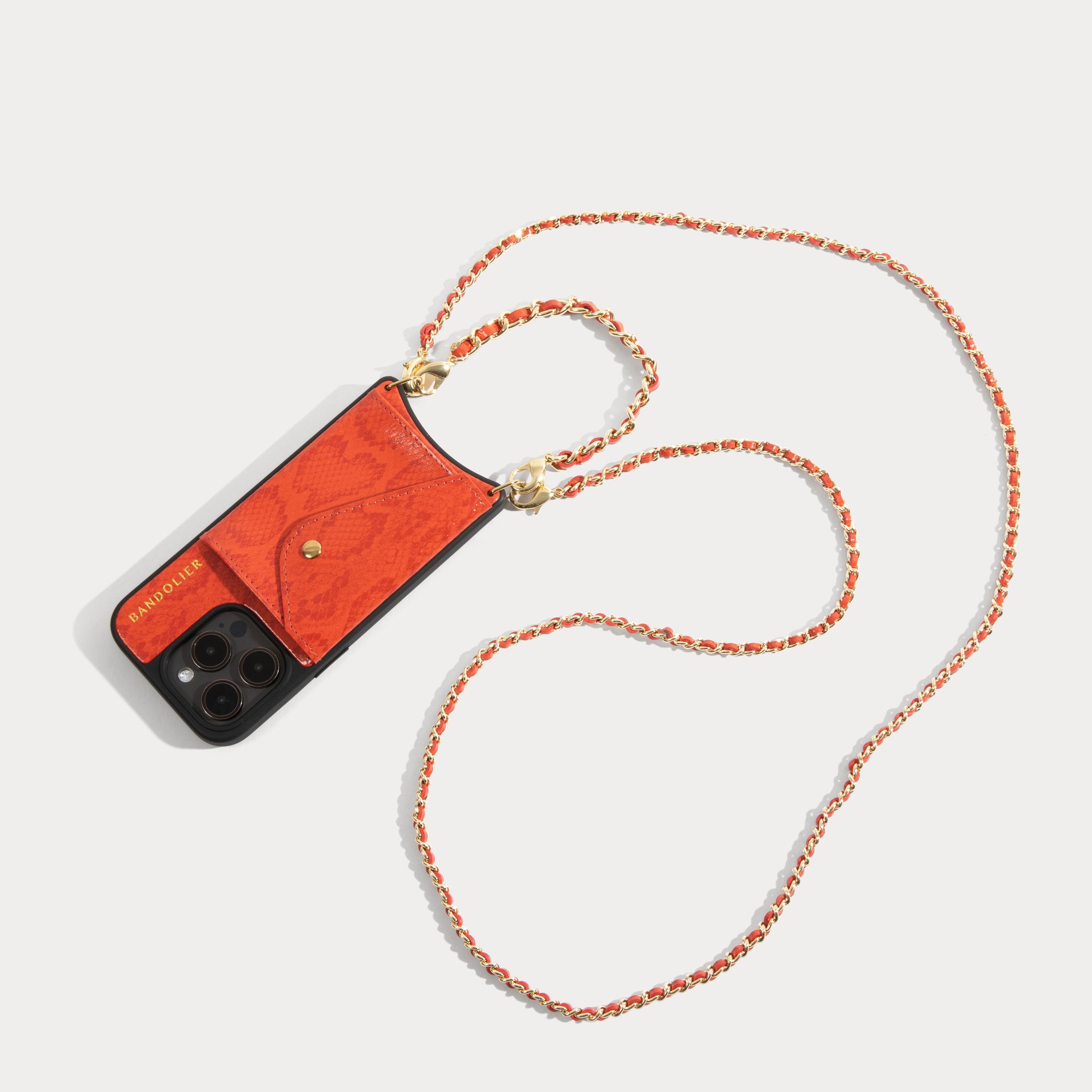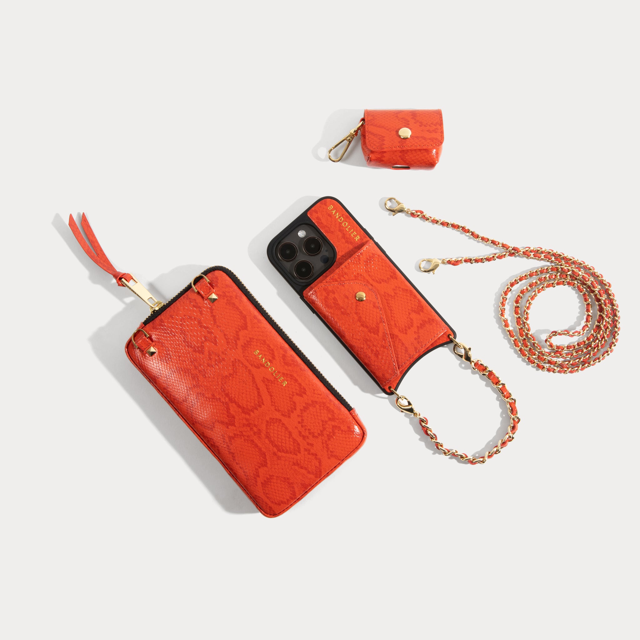 Crossbody with Expanded and AirPods Pouch Set in Orange Snake/Gold