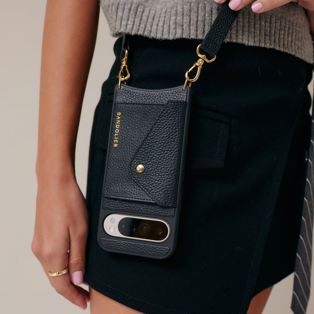The Hailey Pixel 9 crossbody phone case features 100% genuine leather, with an adjustable and detachable strap. Each case is crafted with a soft microfiber inner lining and raised bezel edge.