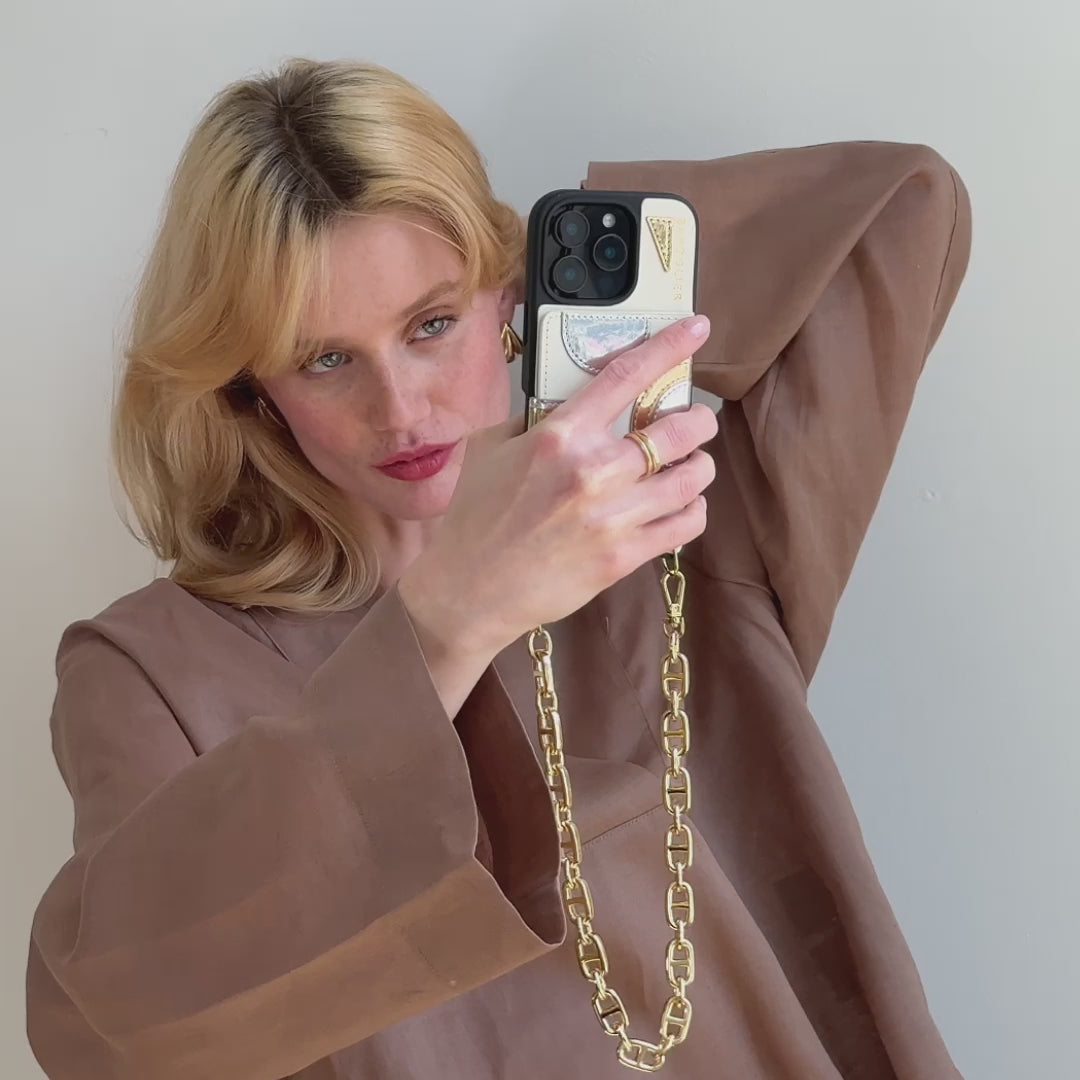 MagSafe Wristlet Phone Case in Ivory/Gold