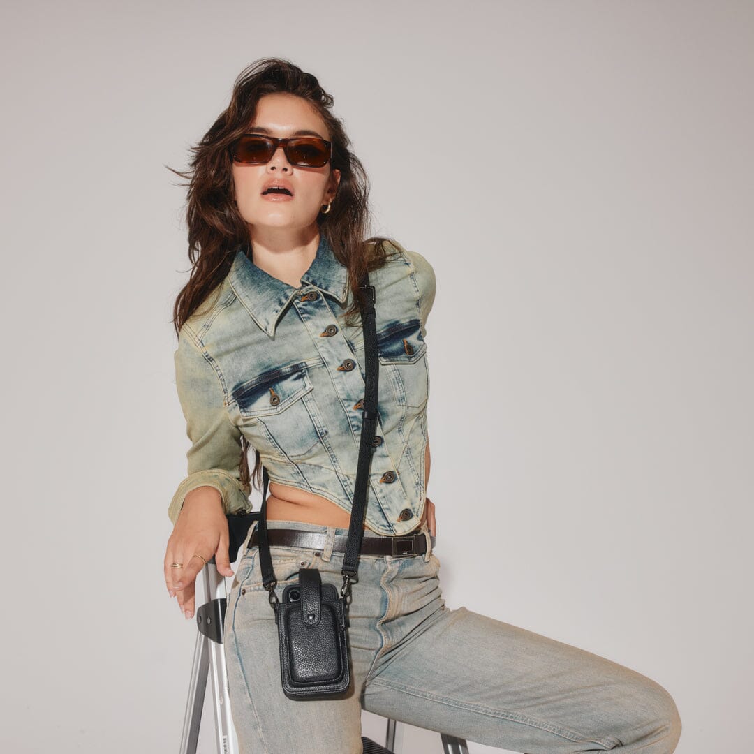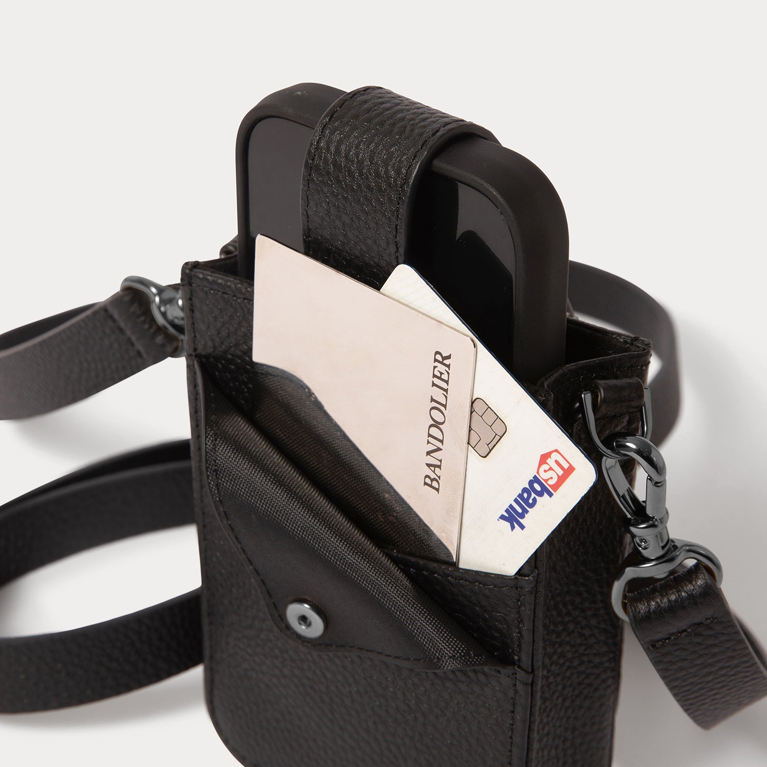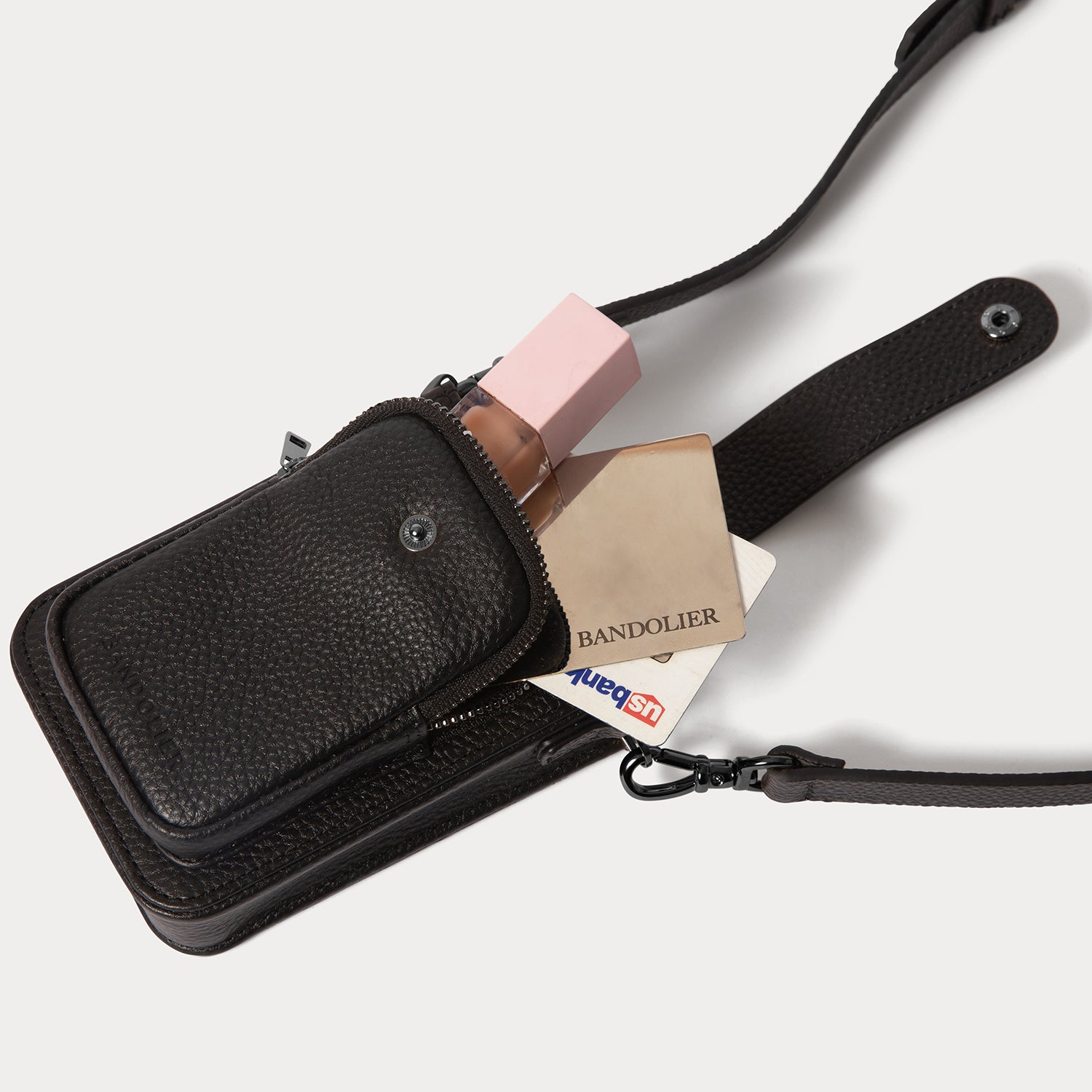 Pocket-sized luxury with purse sized capacity. This one-size-fits-all Hailey Holster is designed to fit and carry almost any phone - from iPhone, Samsung, Android, Google, and more! The genuine leather holster features a universal phone pocket with a snap closure for security, a zipper pouch for keys and small items, and a back wallet compartment for cards + cash.