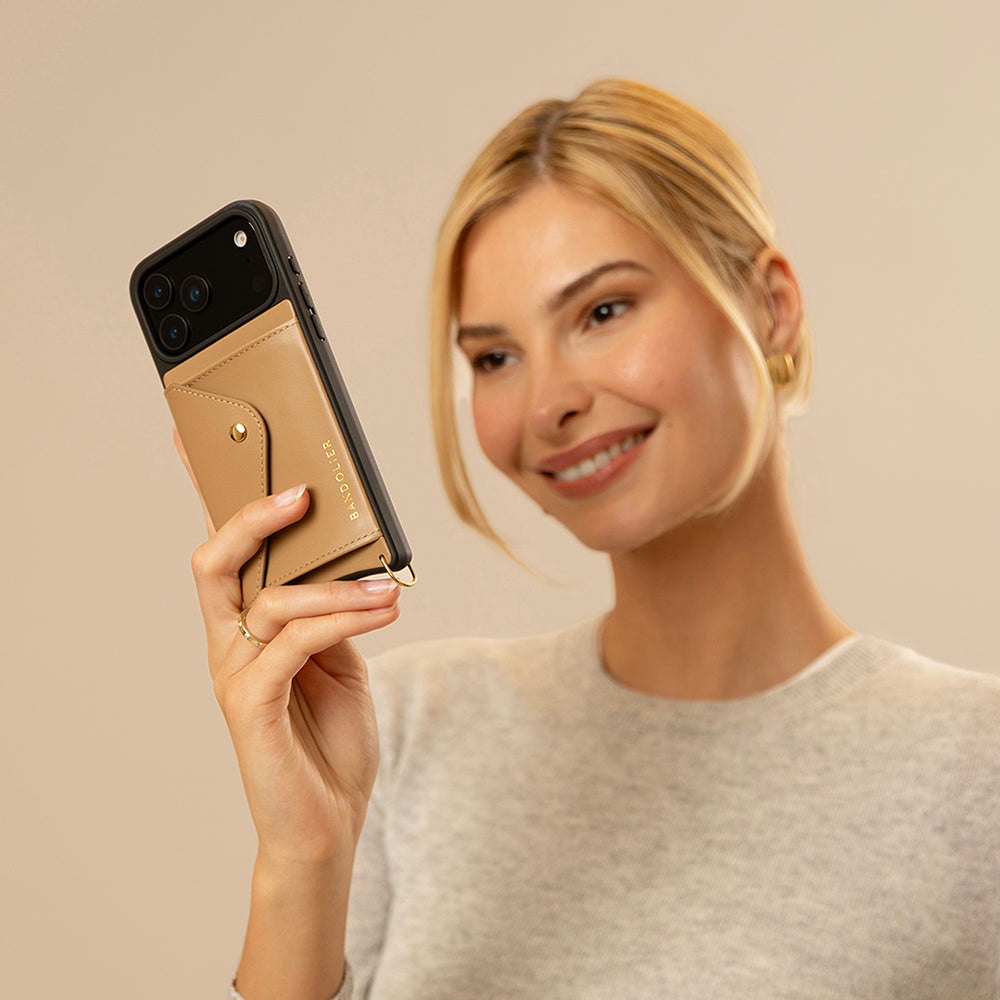 The Donna crossbody phone case features 100% genuine smooth leather, with an adjustable and detachable strap. Each case is crafted with a soft microfiber inner lining and raised bezel edge.