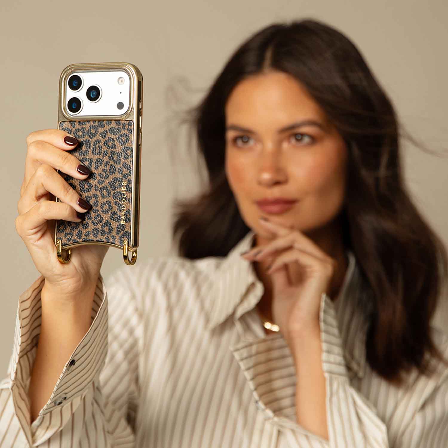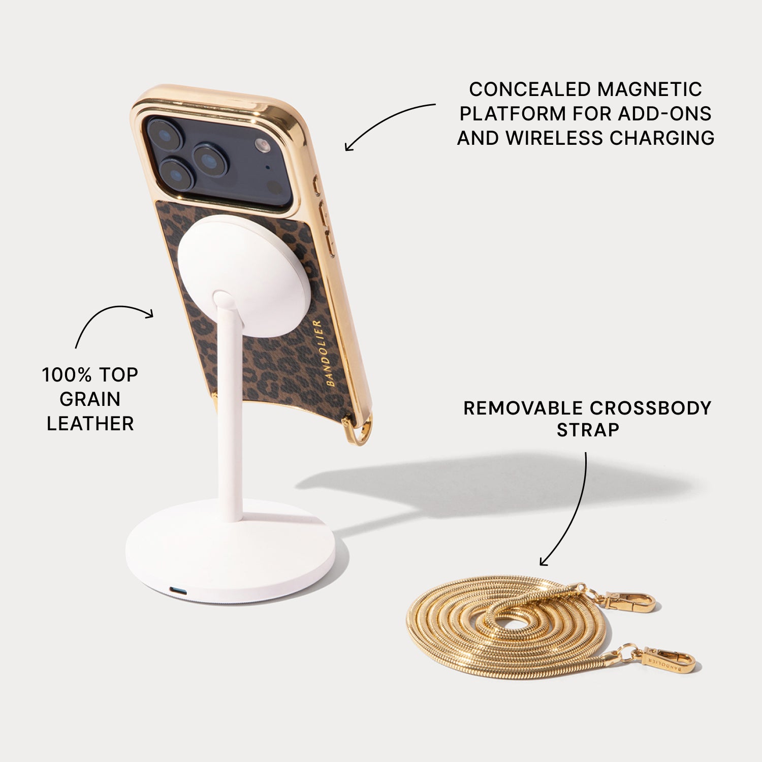 Crossbody Phone Case in Leopard/Gold