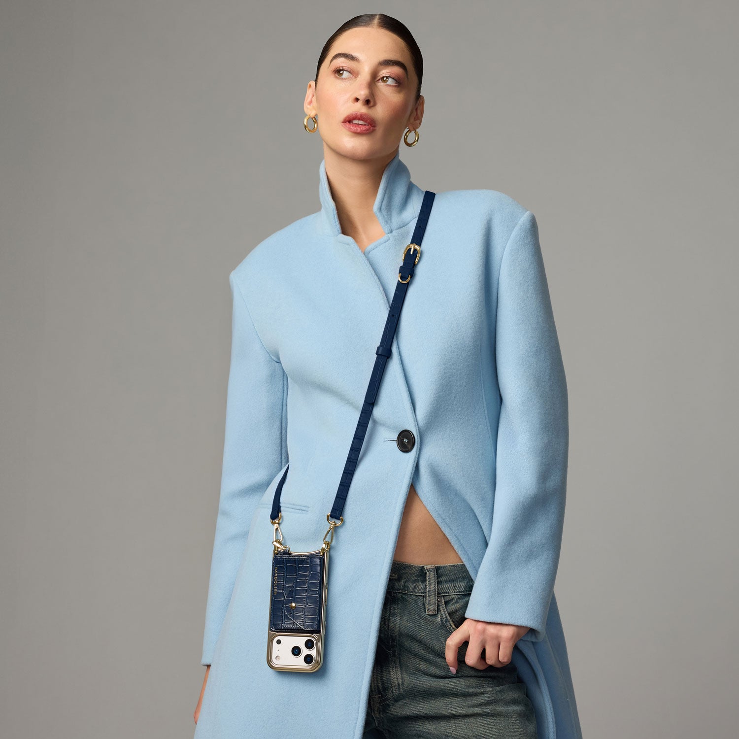 Magnet Wallet Crossbody Phone Case in Navy Croc/Gold
