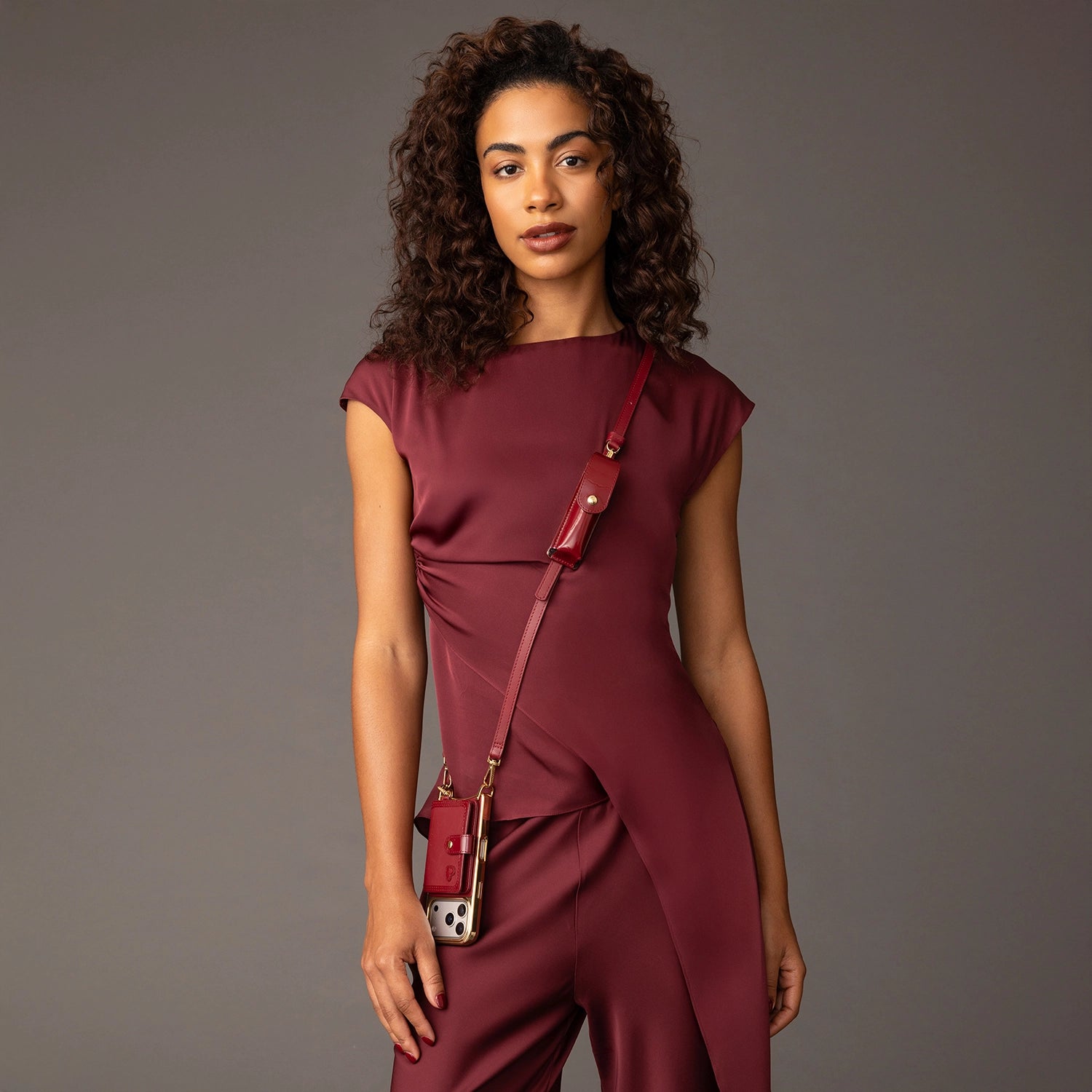 Patent Leather Add-On Lipstick Pouch in Cranberry/Gold