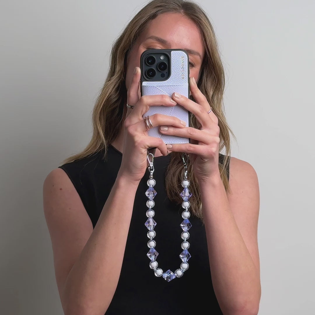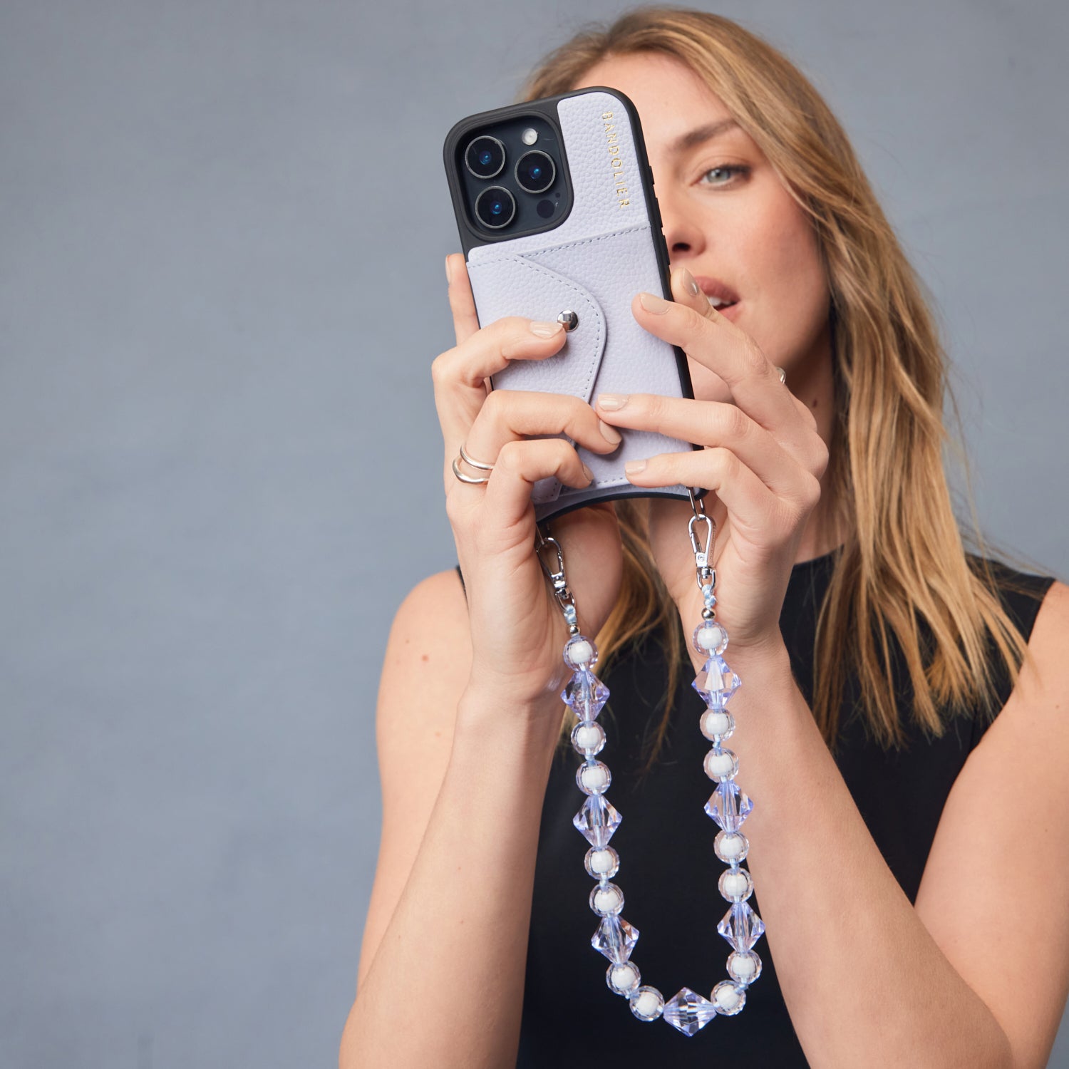 Meet The Brandi Wristlet, designed to attach seamlessly to any Bandolier case, this luxe accessory features delicate periwinkle toned beads. It’s the perfect addition to your Bandolier collection!