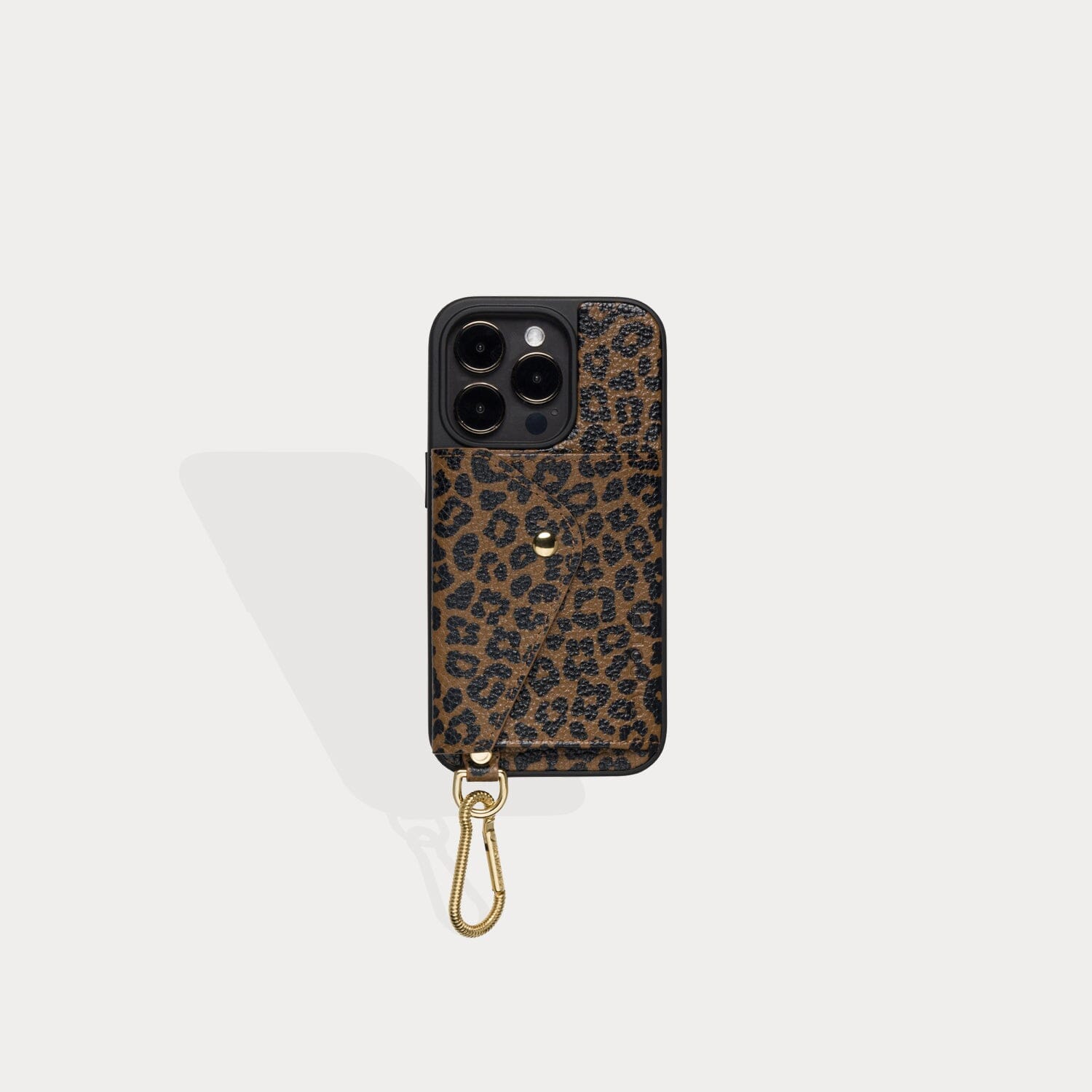 Side-Slot Case with Carabiner Ring in Dark Leopard/Gold