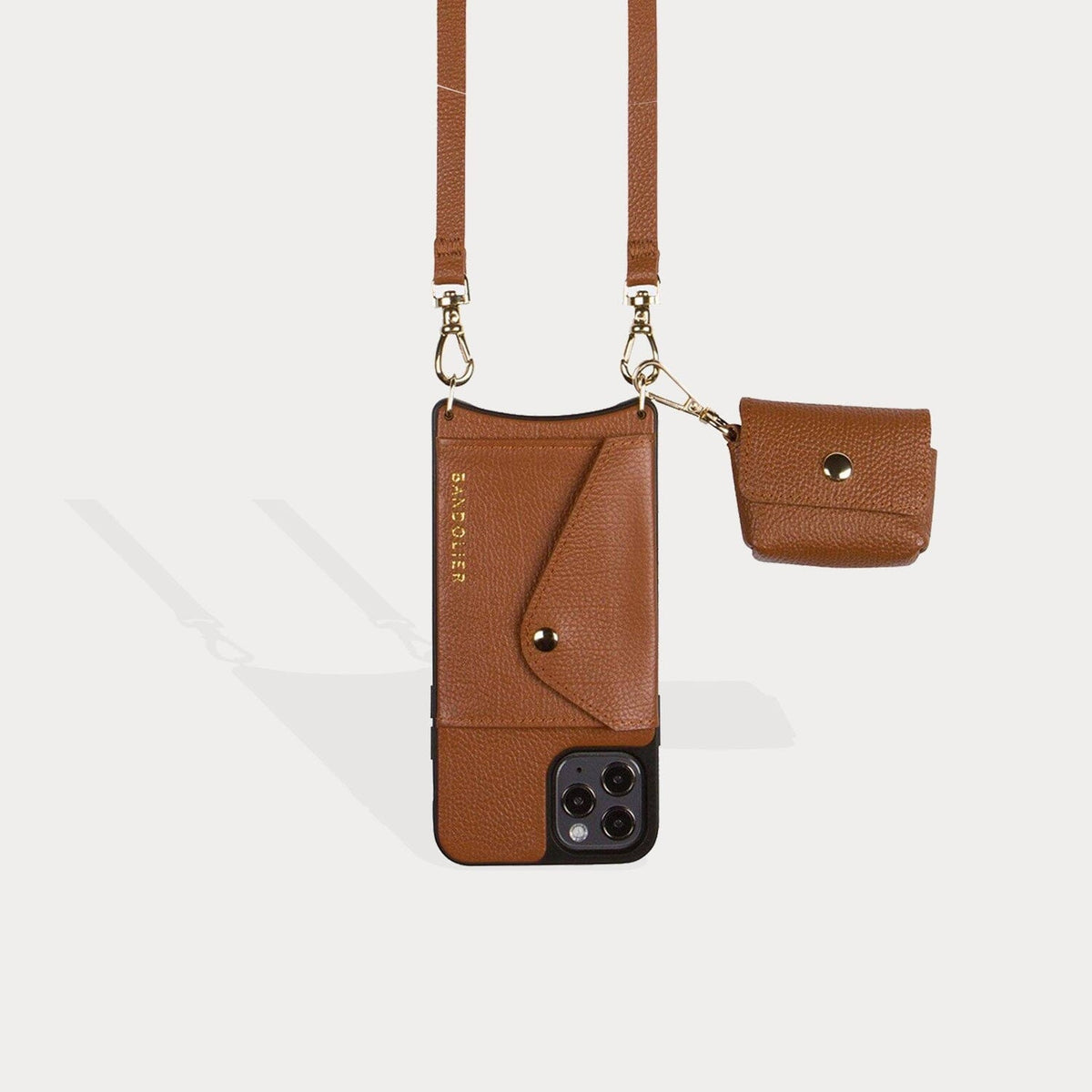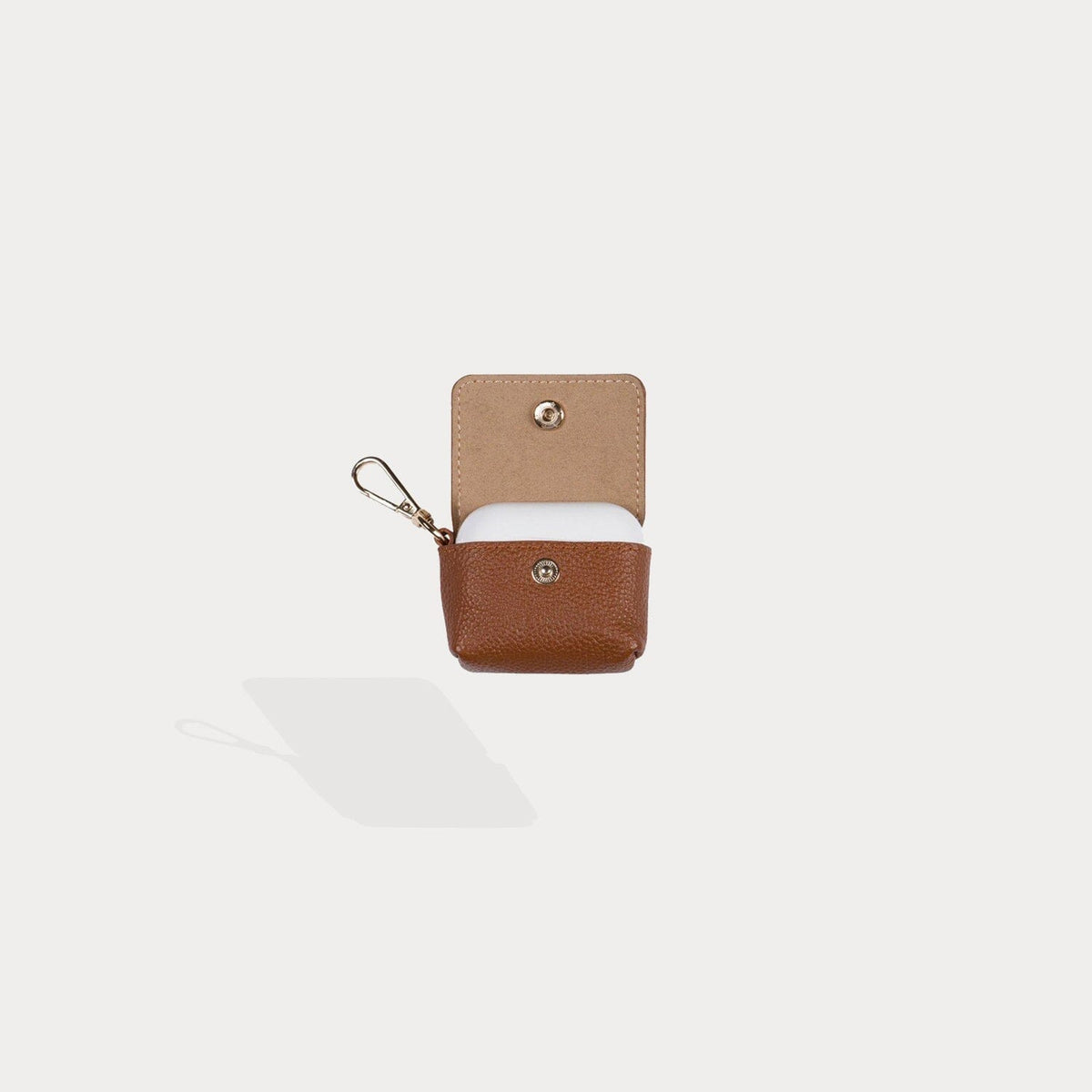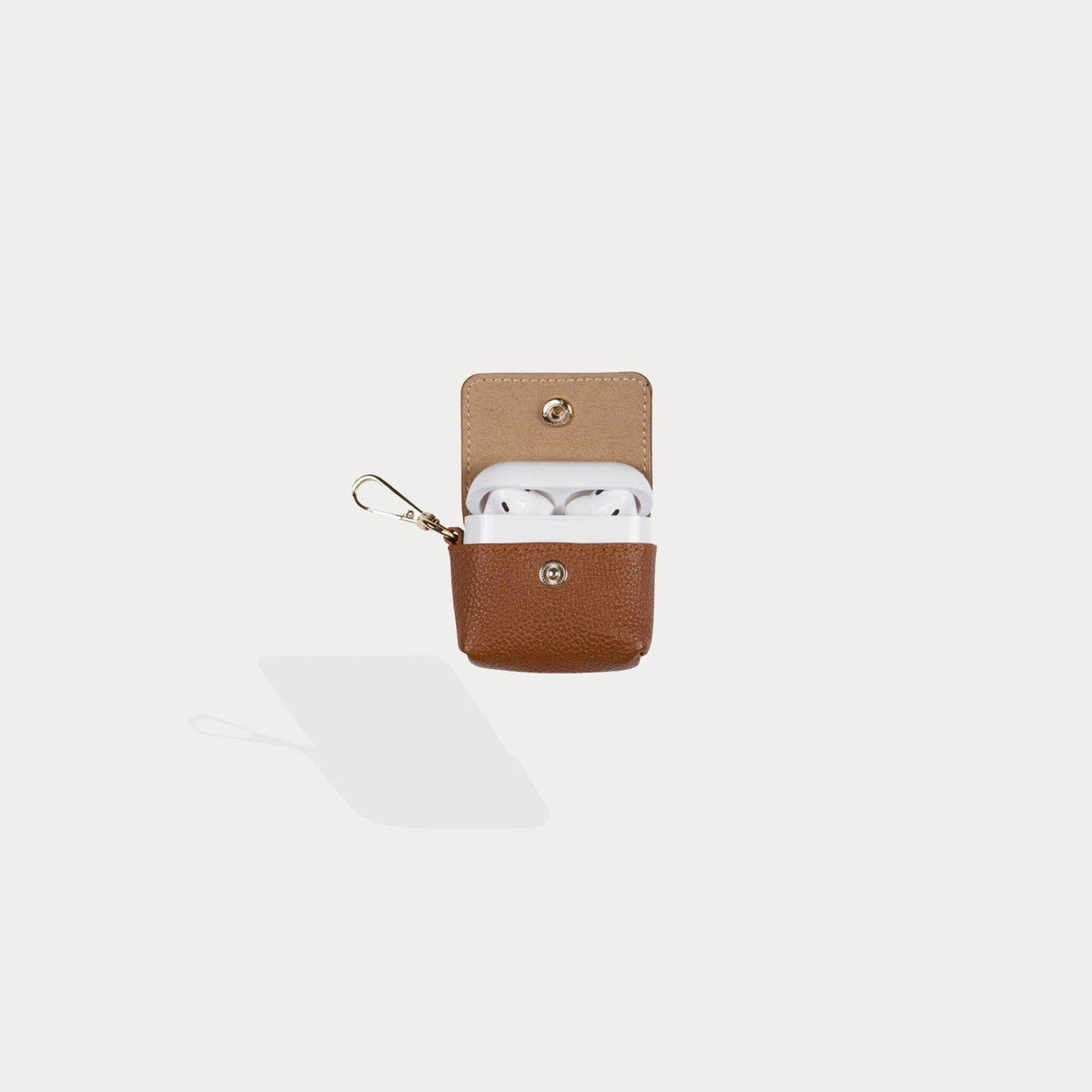 A compact carrier for your AirPods, this pebble leather clip-on pouch with microfiber interior attaches to your Bandolier Phone case, keys or everyday bag to ensure your AirPods are always within reach.