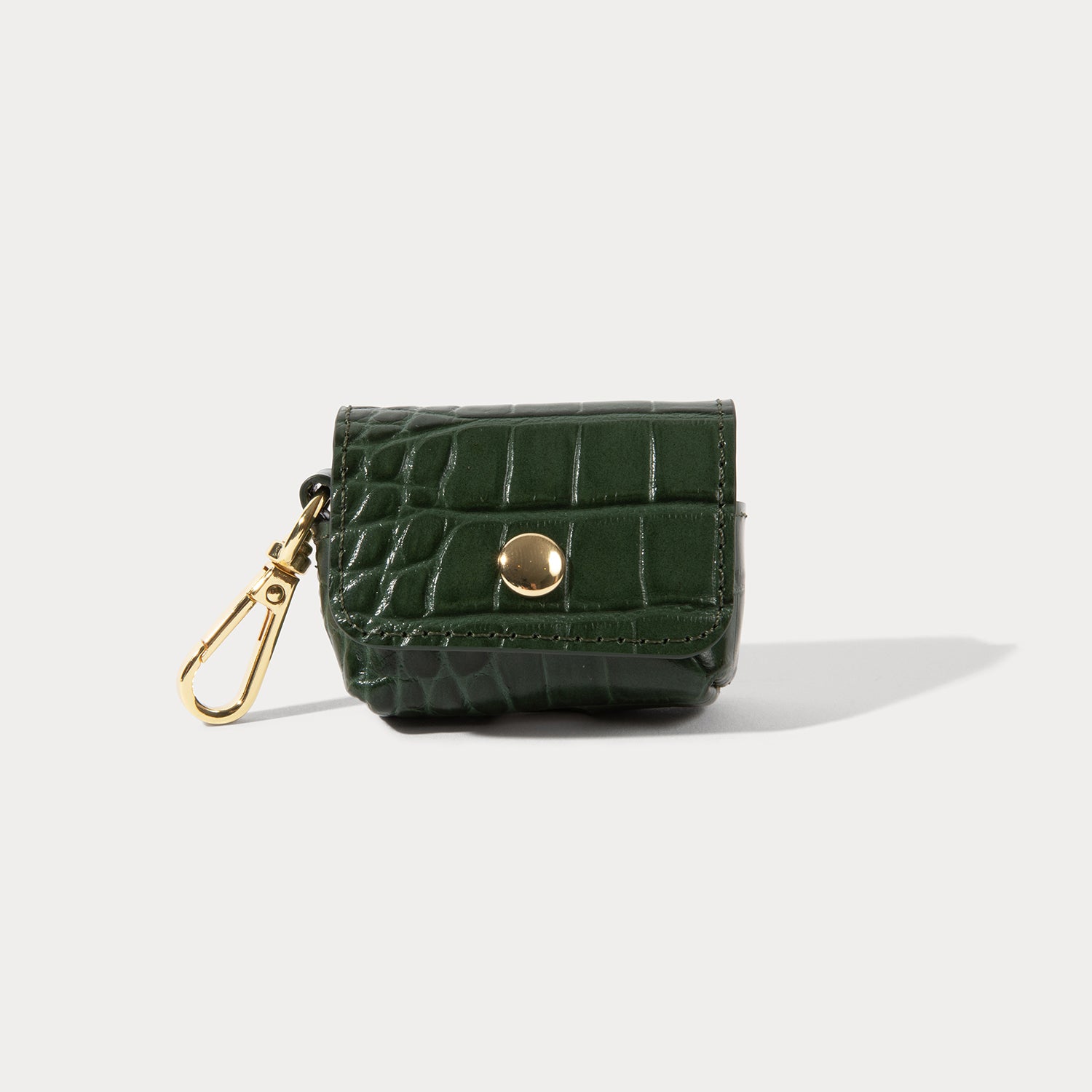 Avery AirPods Clip-On Pouch  - Dark Green Croc/Gold