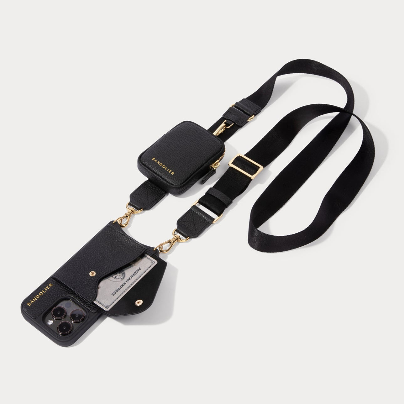 Crossbody Phone Case with Mini Zip Pouch in Black/Gold