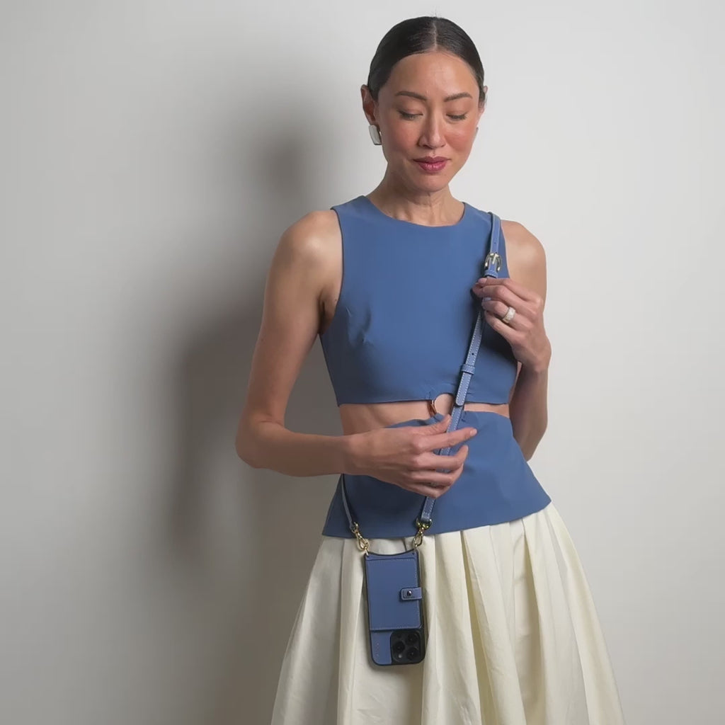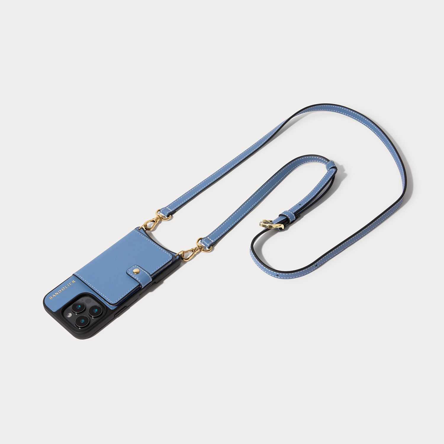MagSafe Crossbody Phone Case in Dusty Blue/Gold