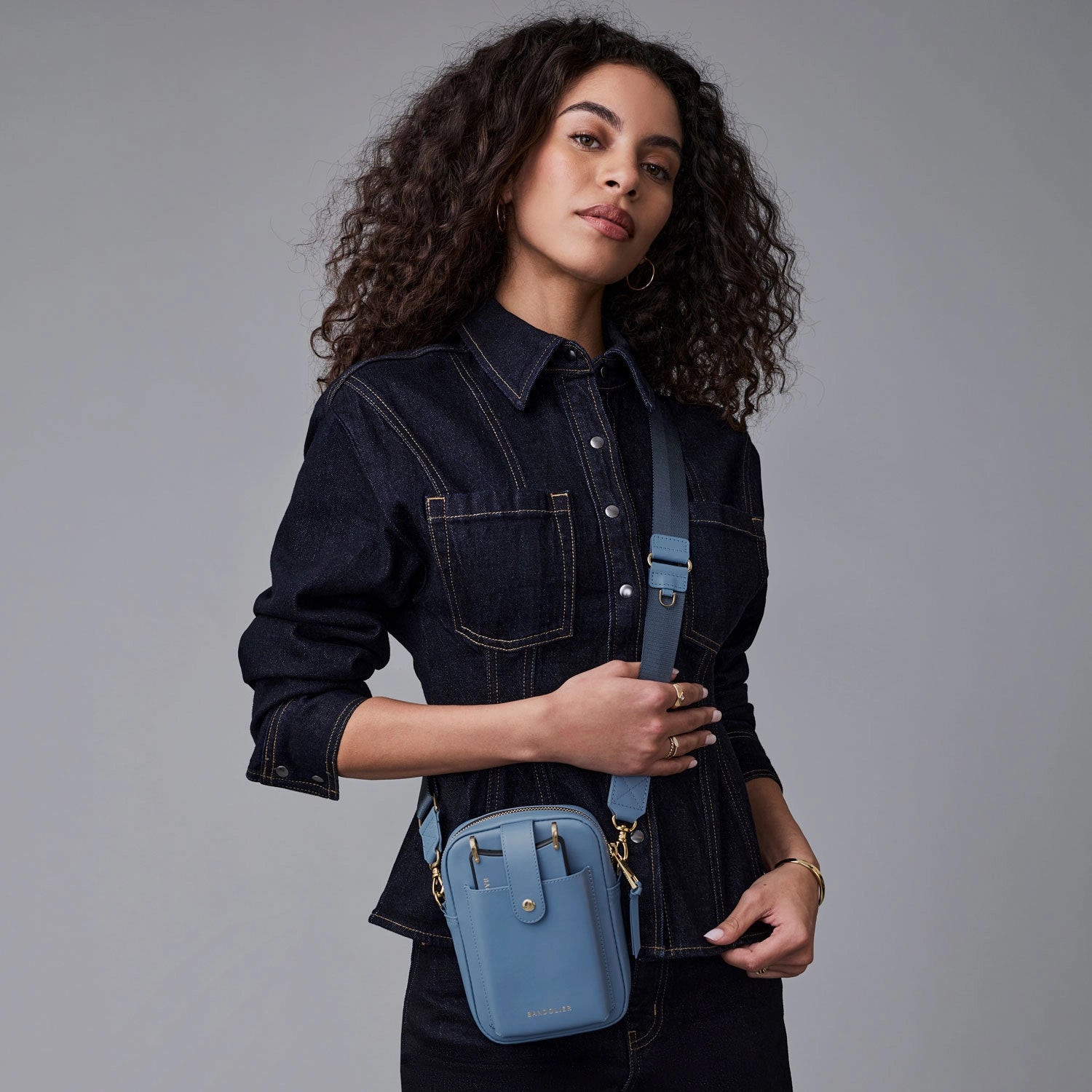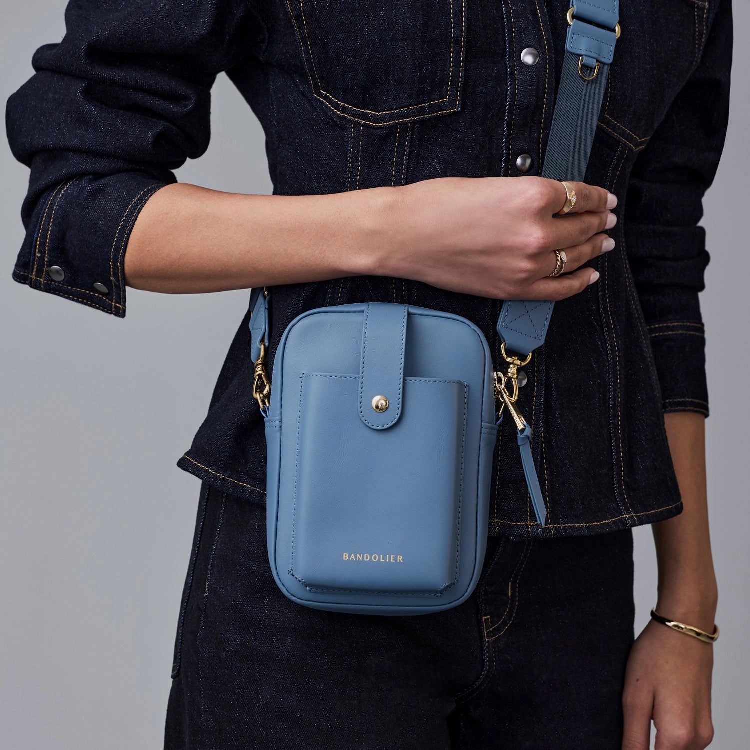 Smooth Leather Crossbody Bag in Dusty Blue/Gold