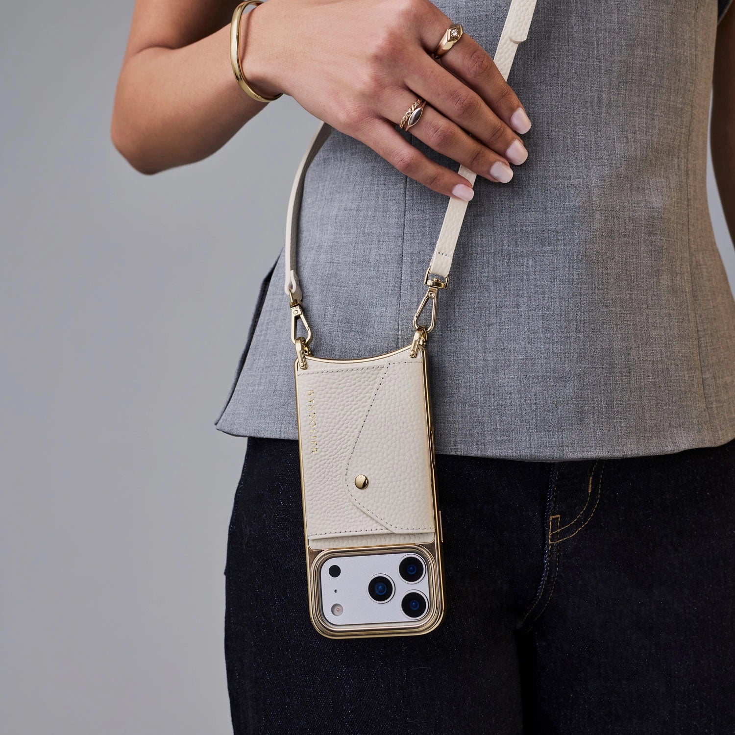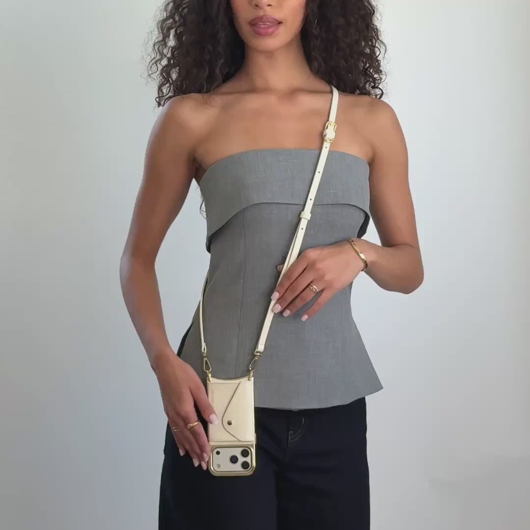 Crossbody Phone Case in Ivory/Chrome Gold