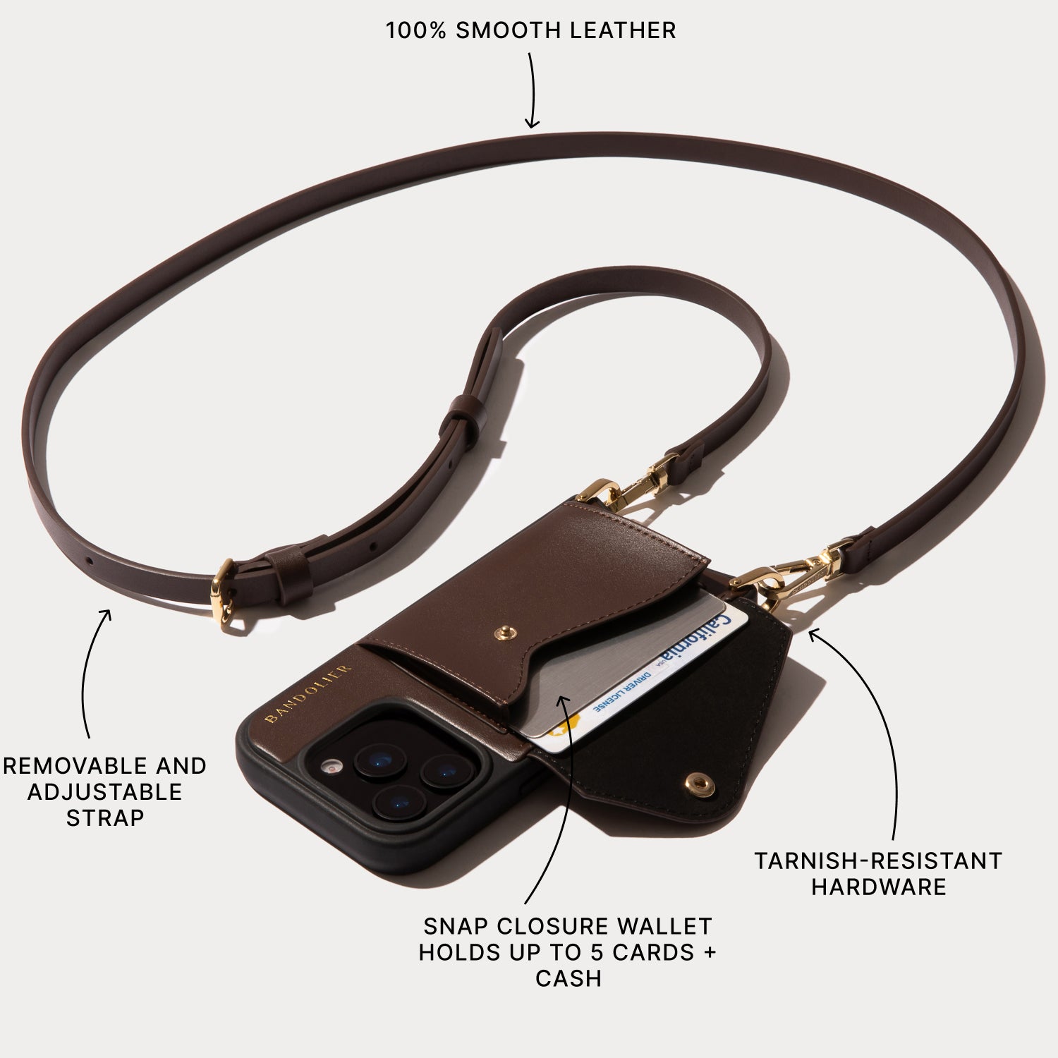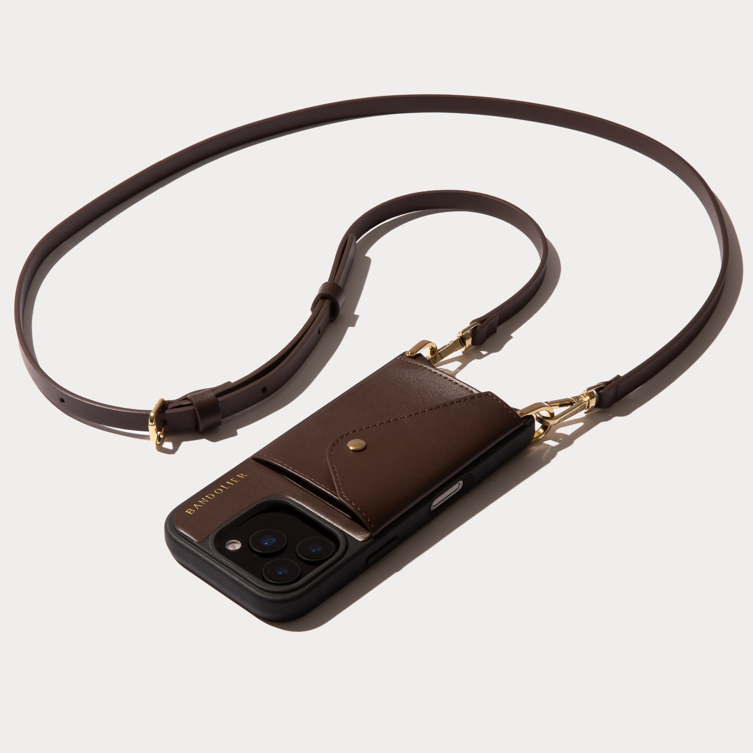 Crossbody Phone Case in Espresso Brown/Gold