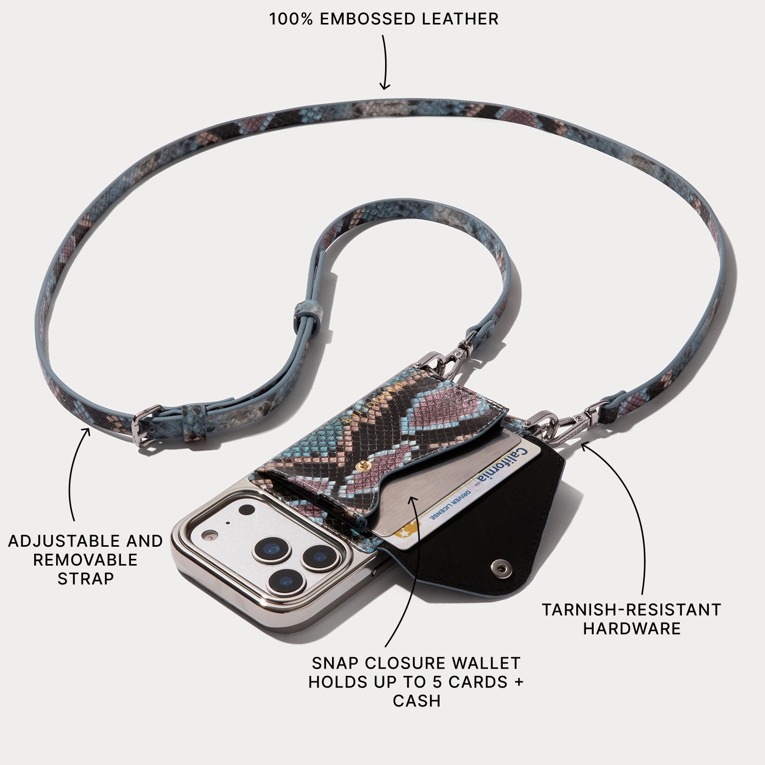 The first-ever genuine smooth leather luxury set crafted to triple your hands-free space in three minimalist pieces. Store your sunglasses in Donna's spacious expander pouch, add your go-to cards in her iPhone wallet pocket. Link them all together to keep everything you need while on-the-go in one spot!