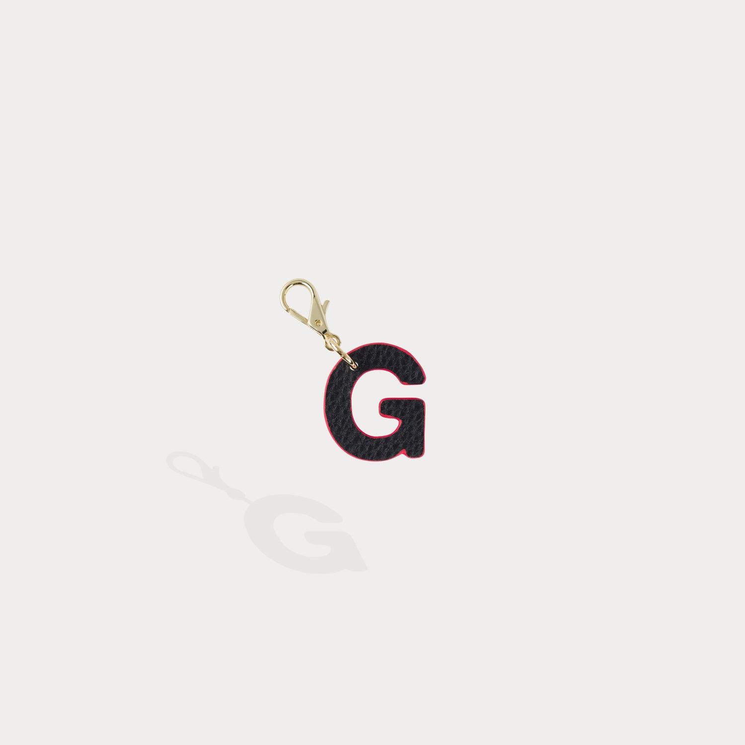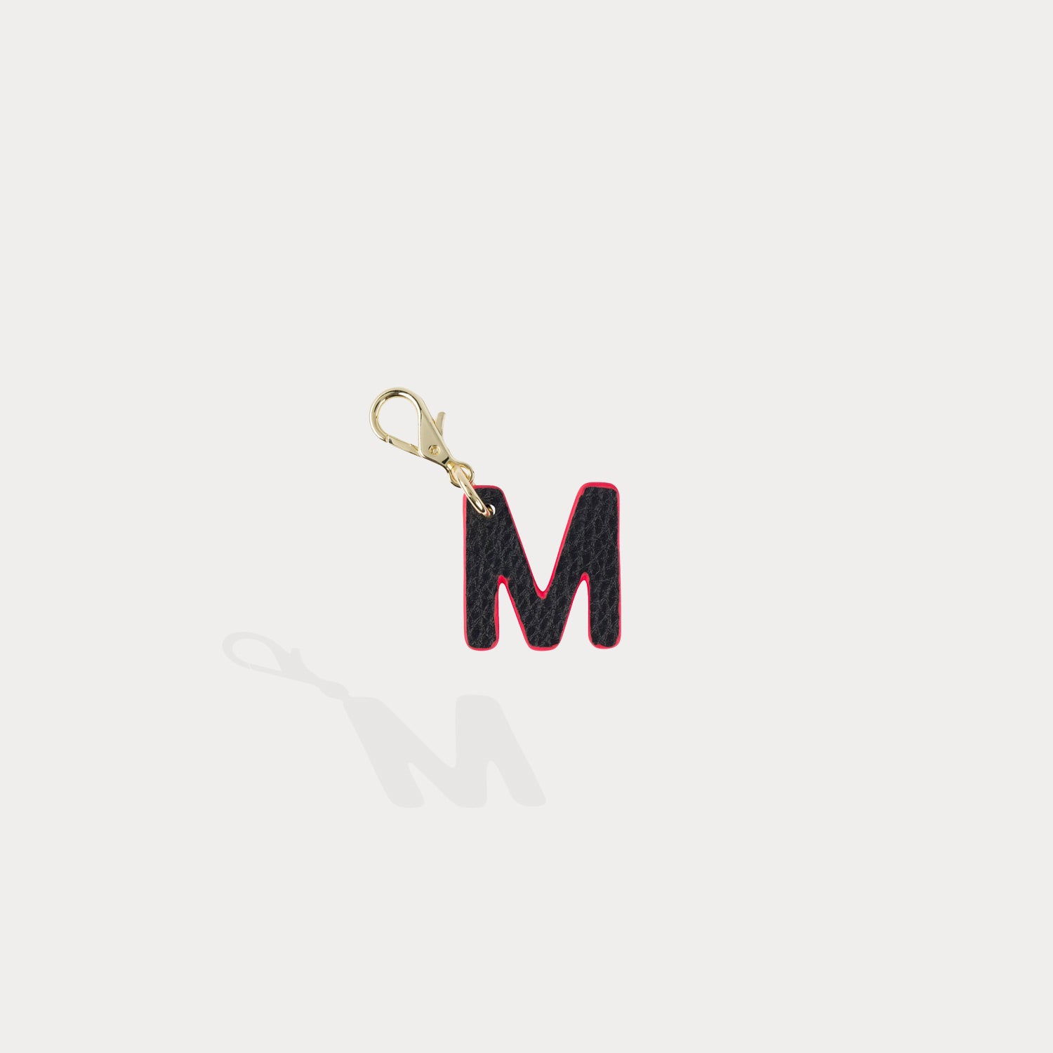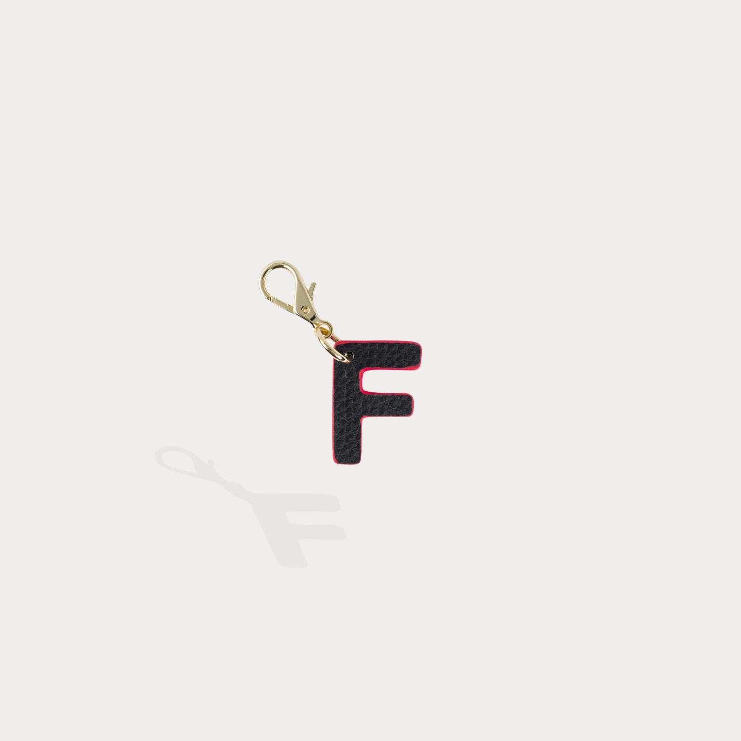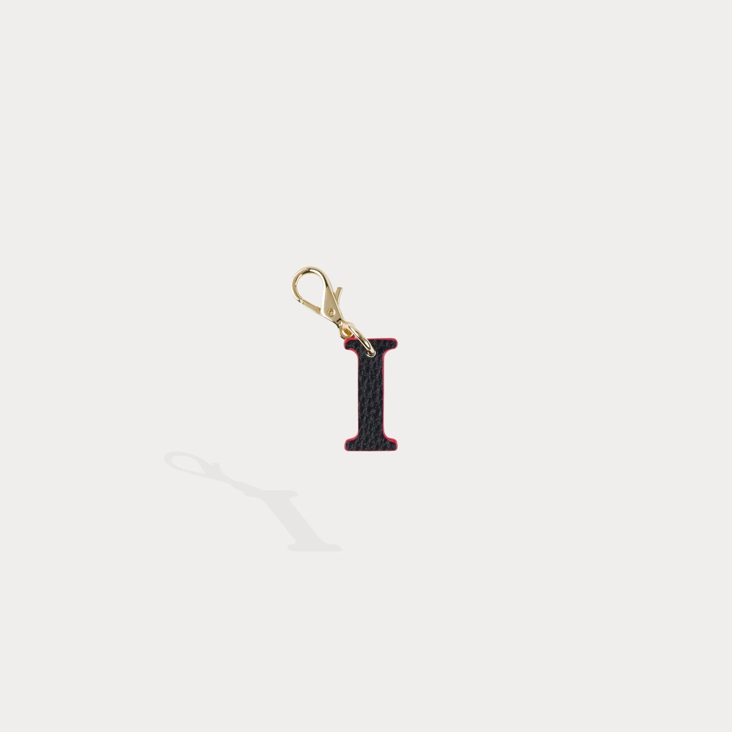 Top Grain Leather Initial Charm in Black/Classic Red/Gold