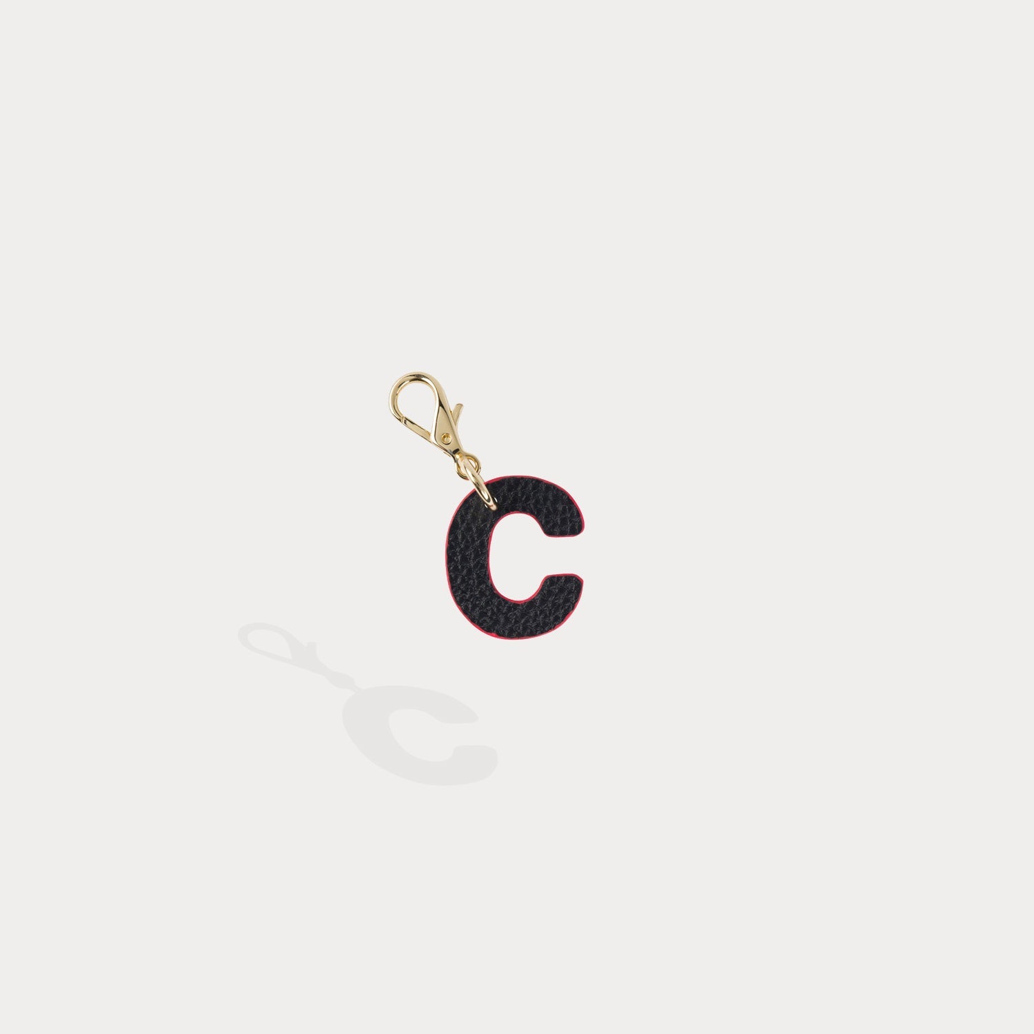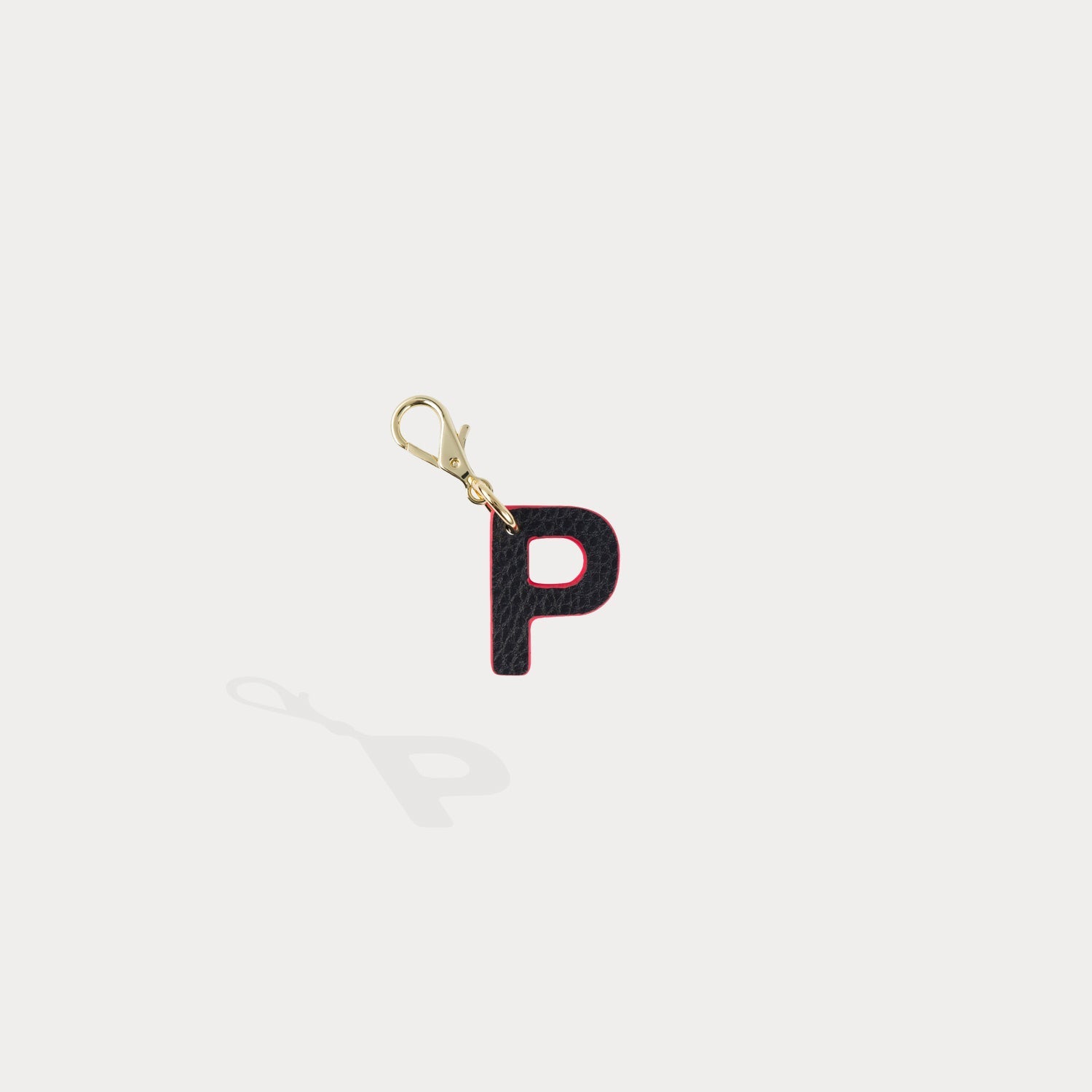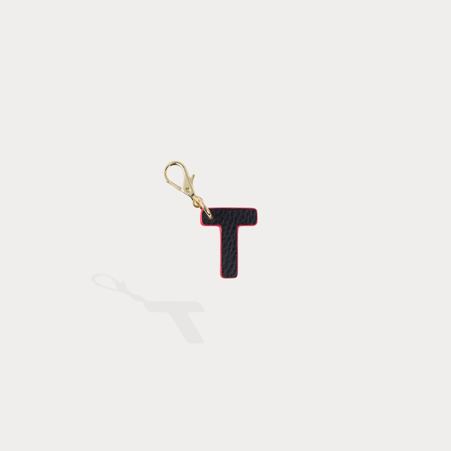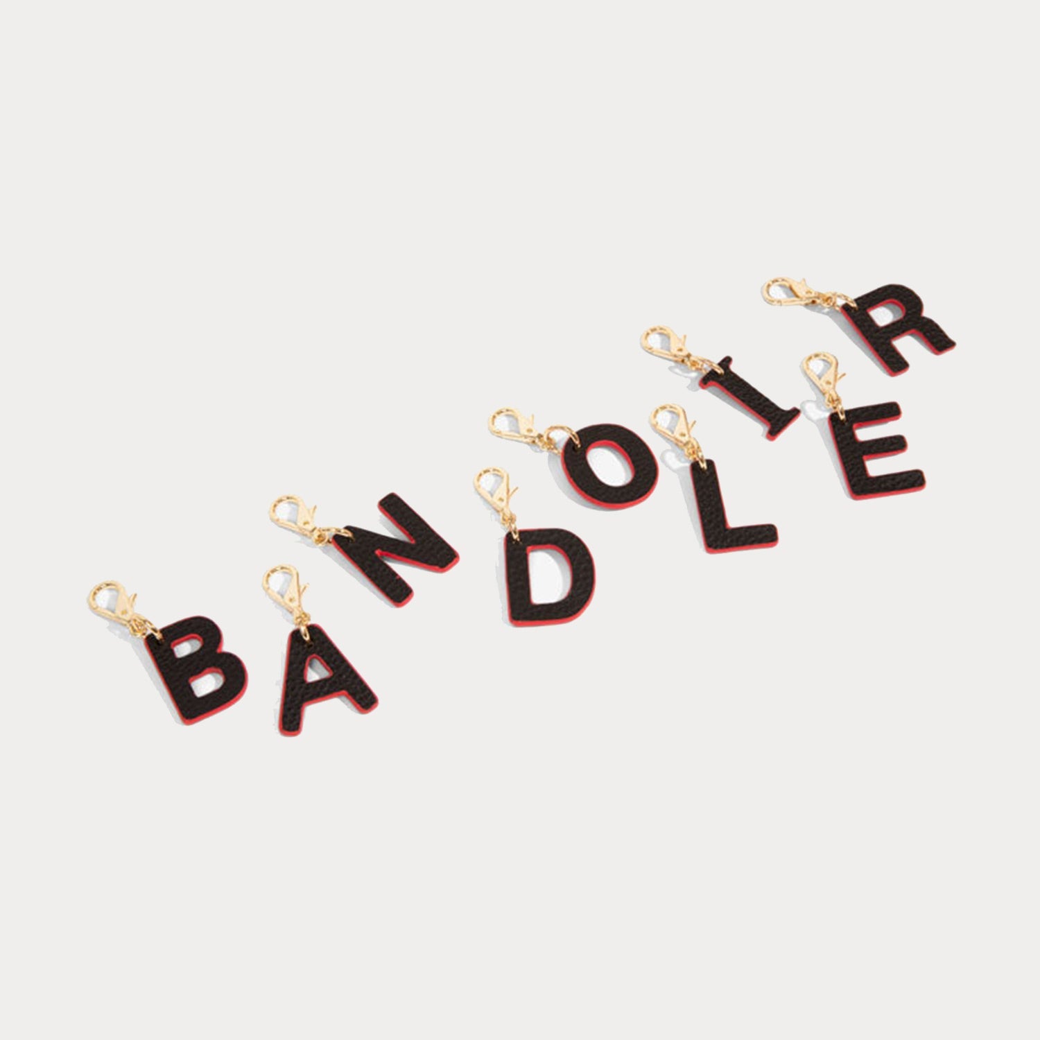 Top Grain Leather Initial Charm in Black/Classic Red/Gold