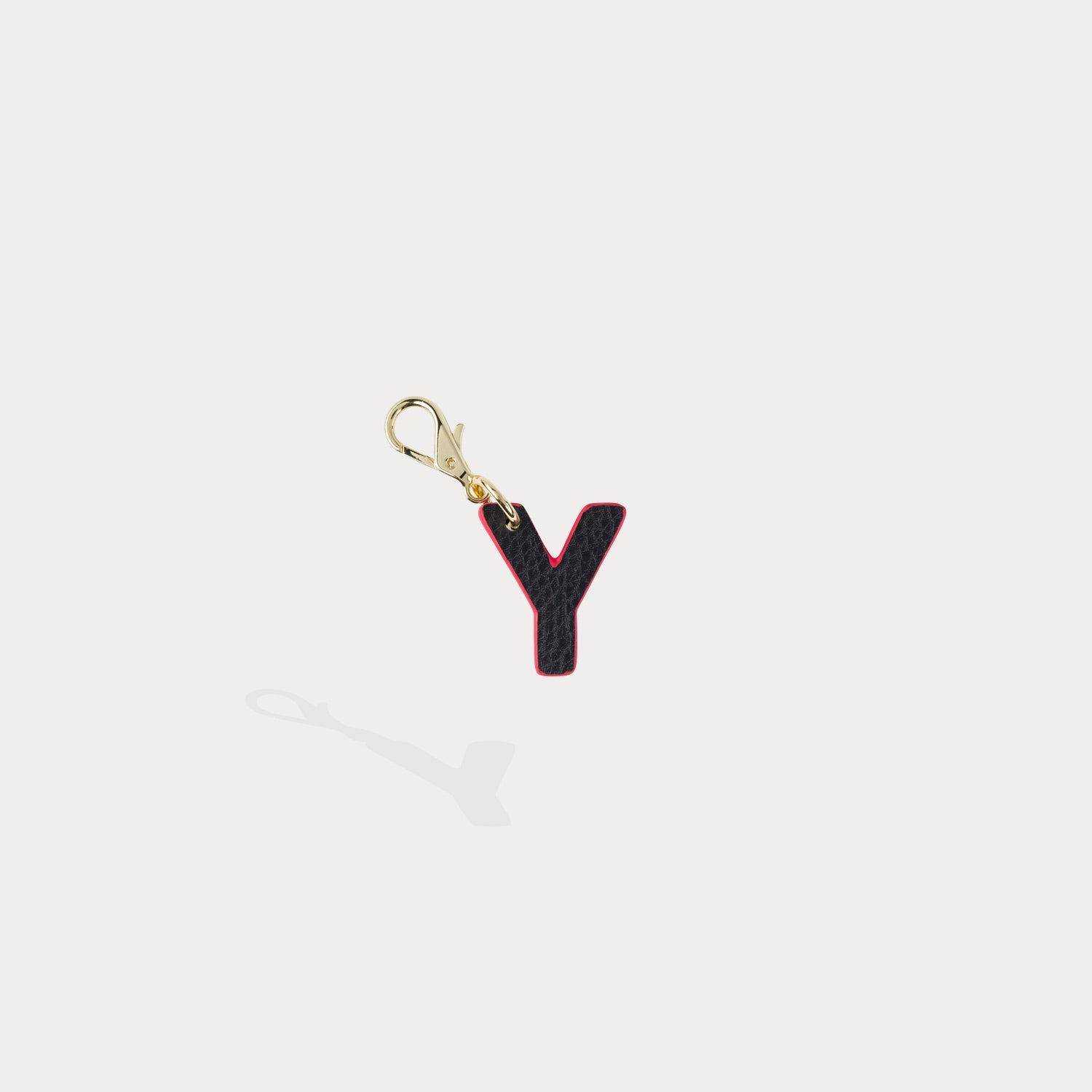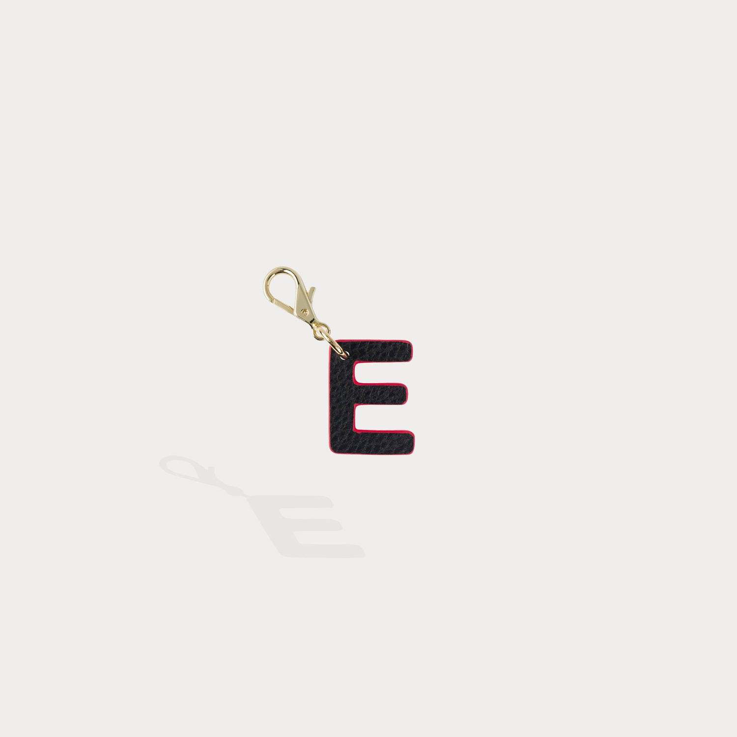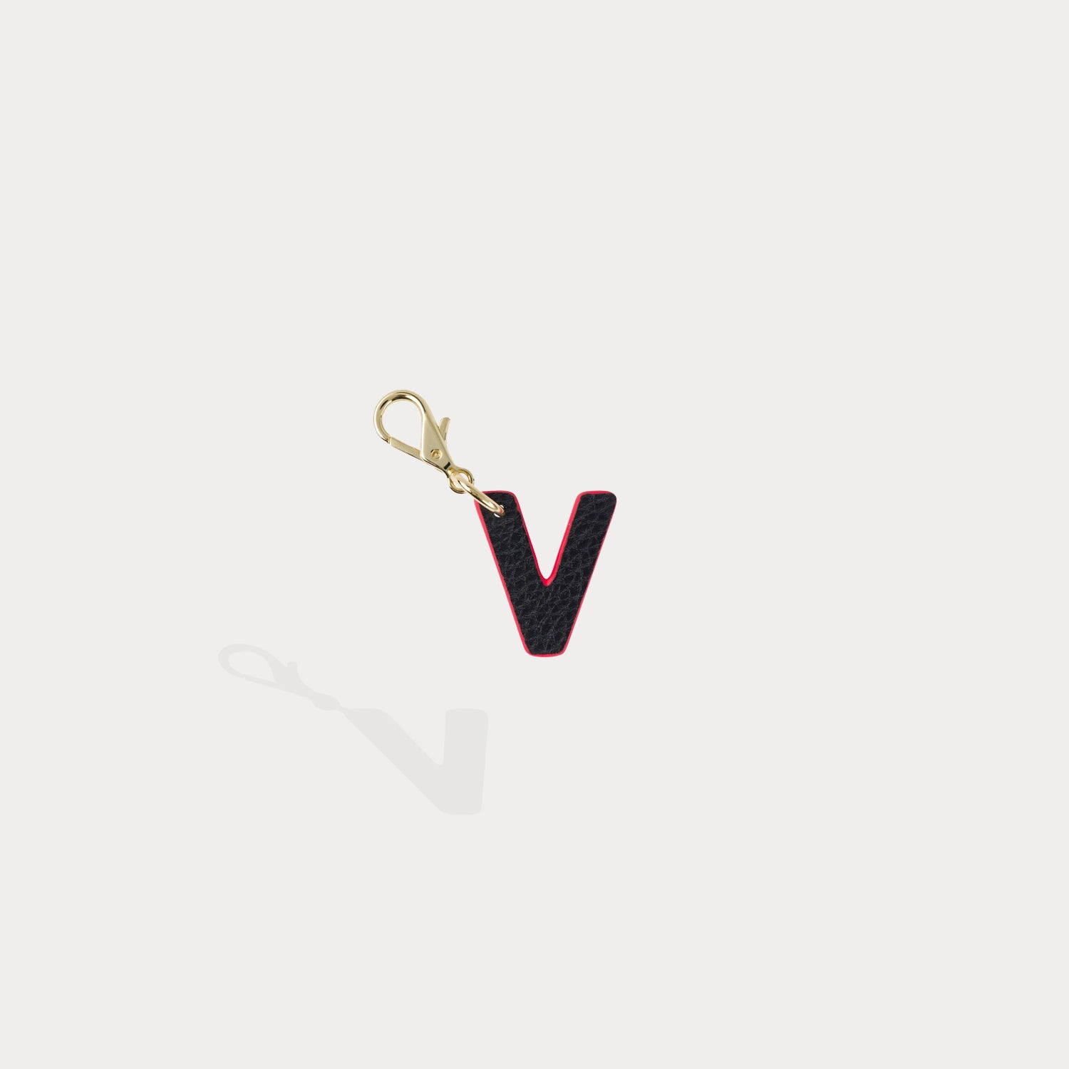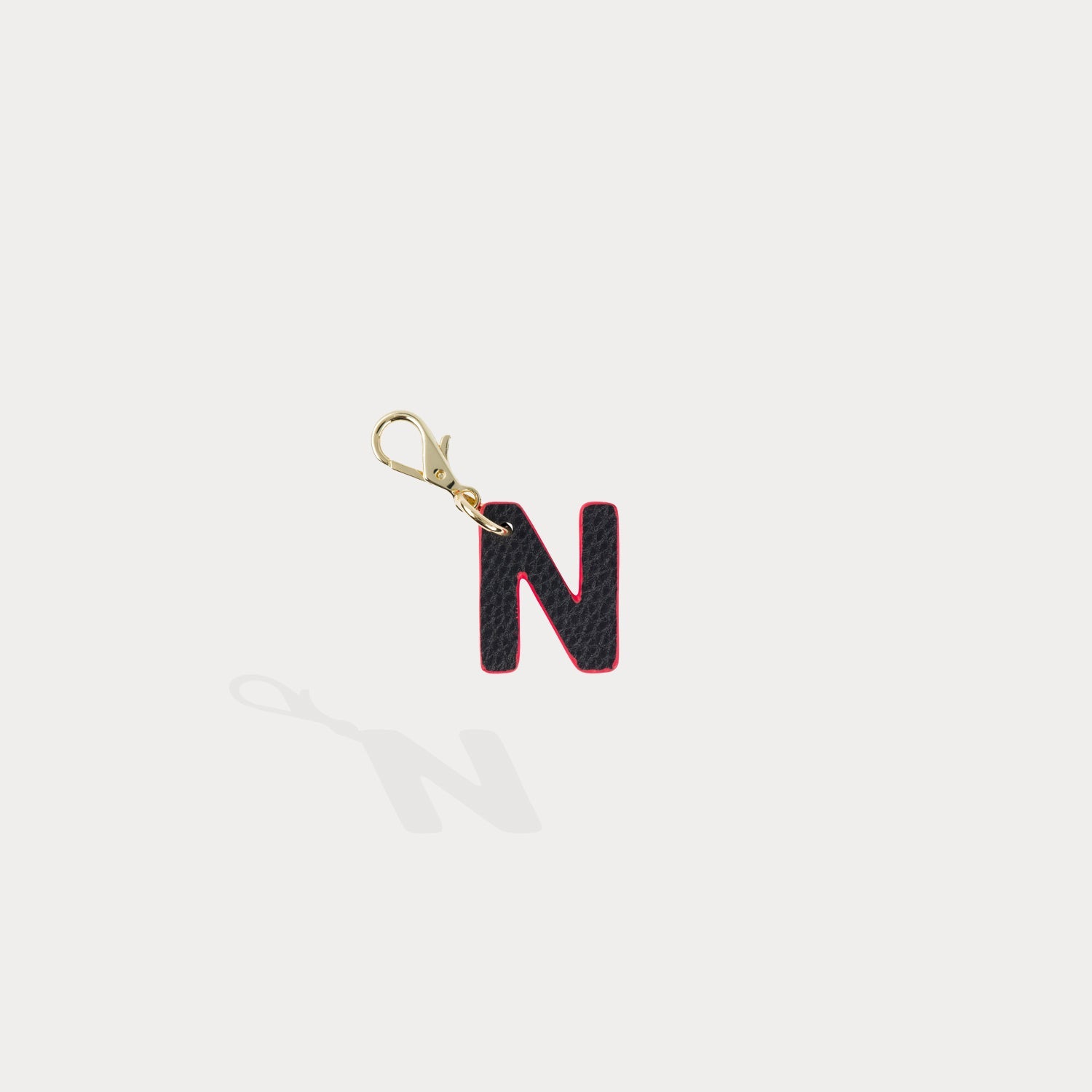 Top Grain Leather Initial Charm in Black/Classic Red/Gold