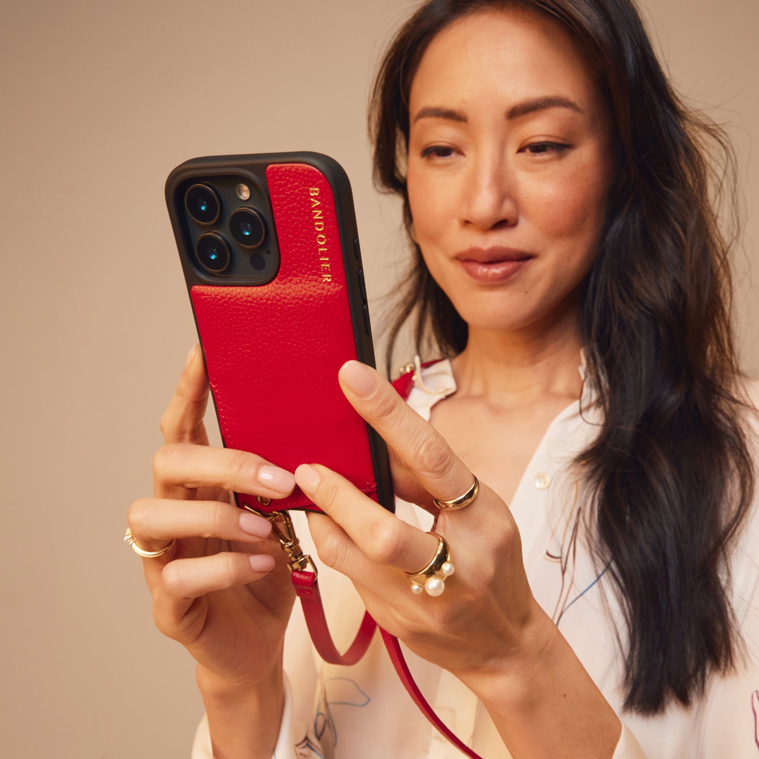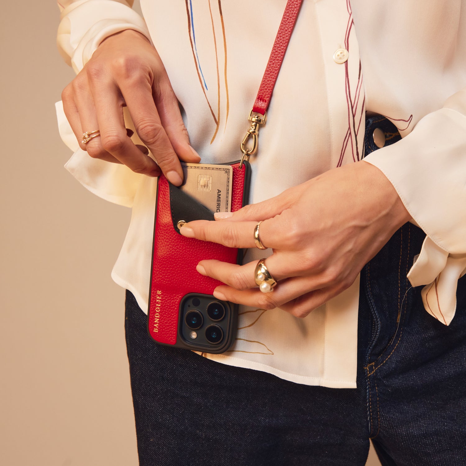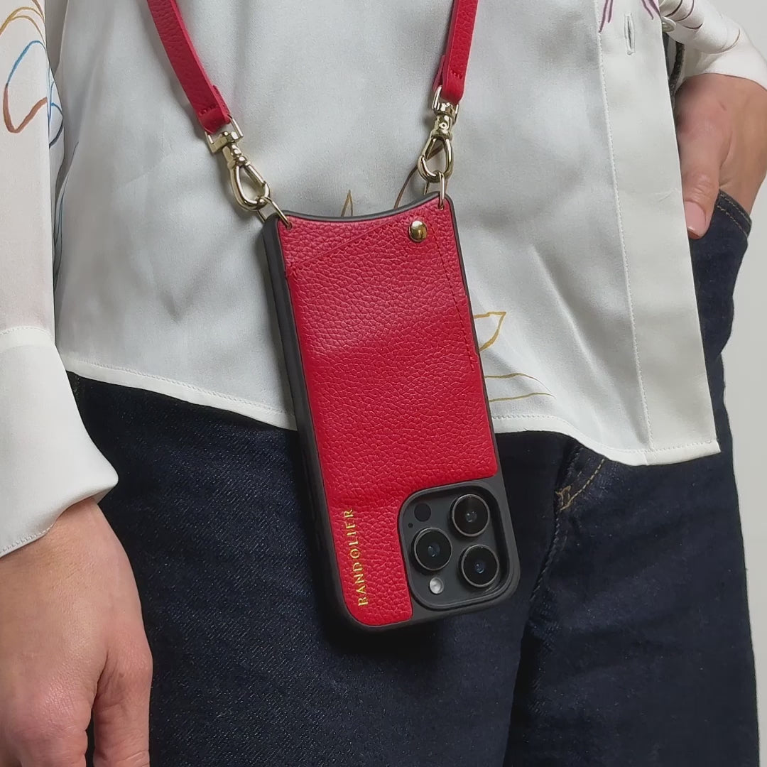 Crossbody Phone Case in Red/Gold