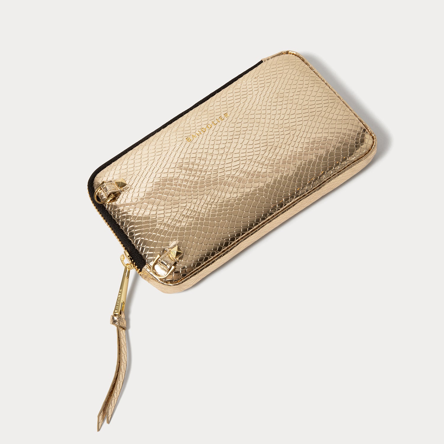 Vegan Leather Expanded Zip Pouch in Chrome Gold/Gold
