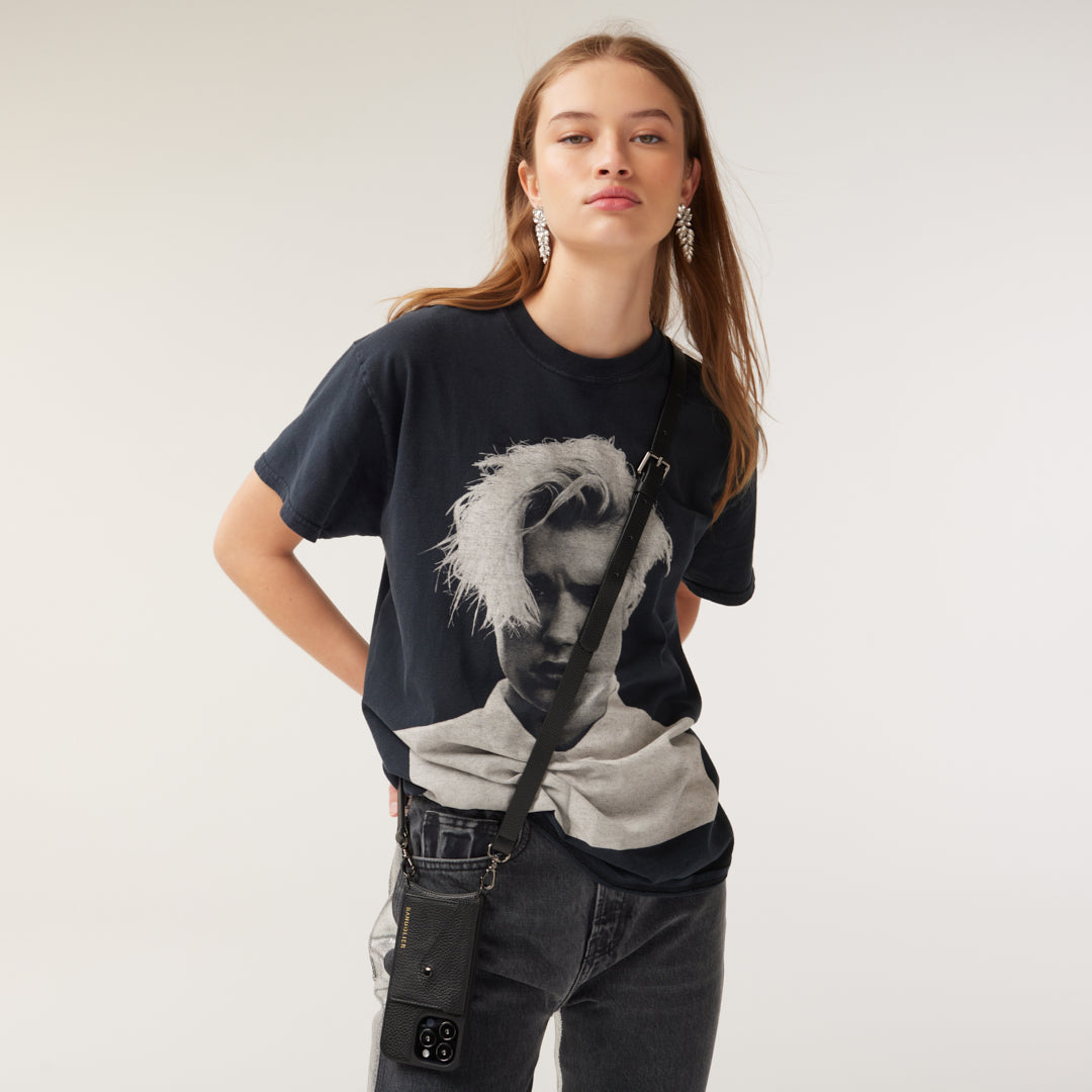 Hailey Crossbody and Charm Wristlet Set in Black/Pewter