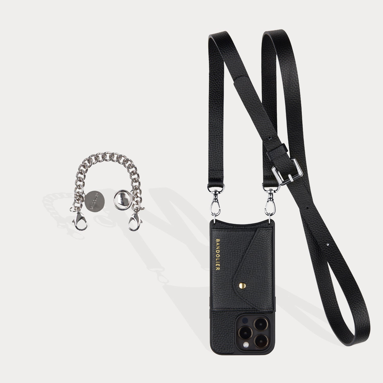 Hailey Crossbody and Charm Wristlet Set in Black/Silver