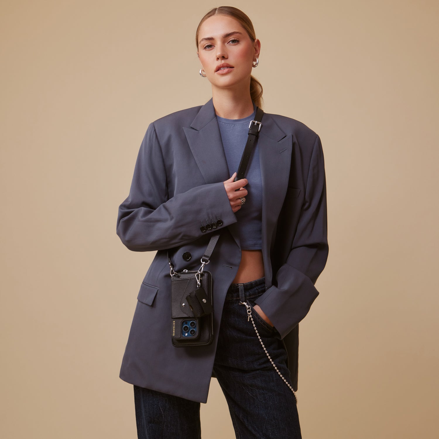 Available for the first time ever, The Hailey Classic Set features our best-selling Hailey side-slot crossbody Bandolier paired with coordinating expanded pouch and AirPod pouch.
