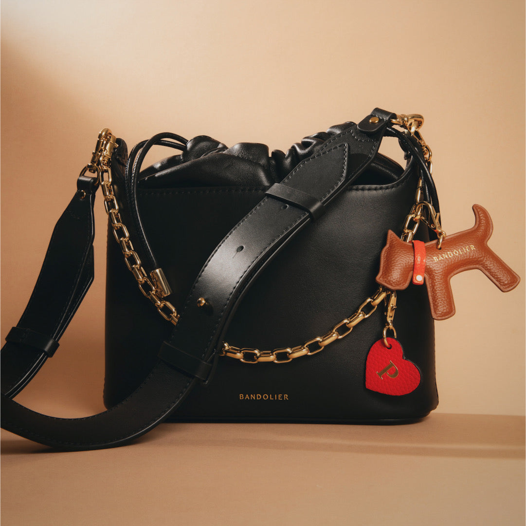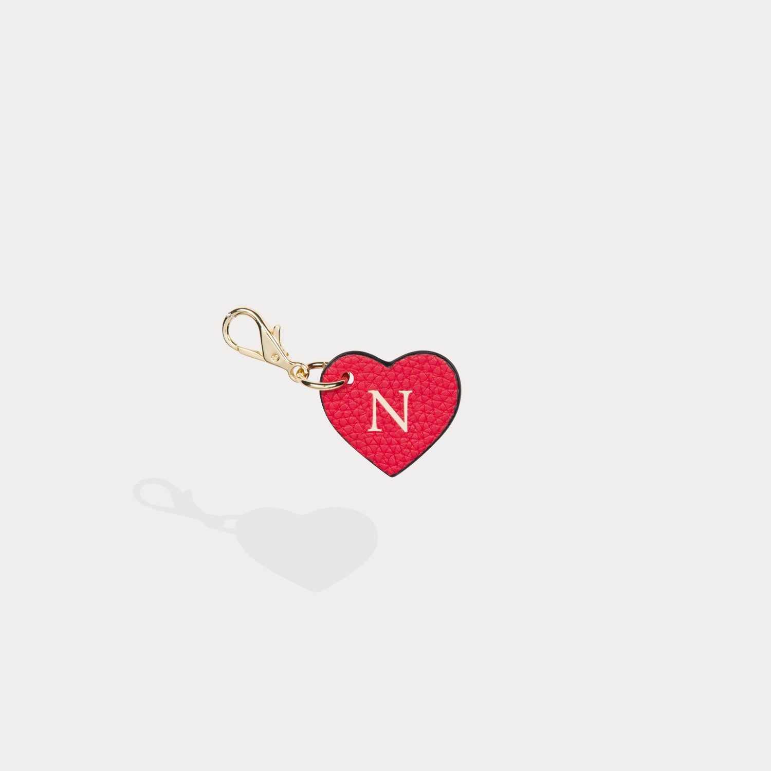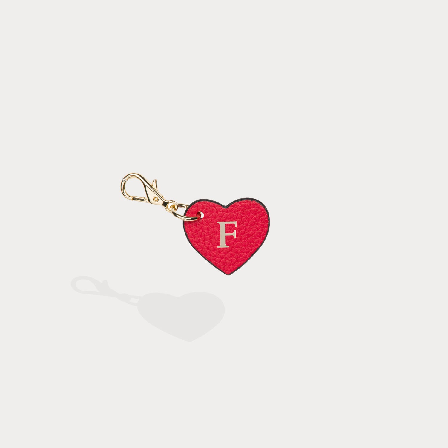 Show your keys and Bandolier some love with the all new, limited edition Heart Initial Charm. One of our most requested add-on accessories is finally here and featuring our classic red pebbled leather with contrast black edging and gold plated hardware with connector.