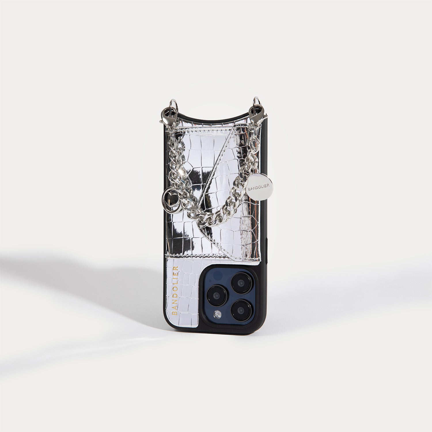 Charm Wristlet Phone Case in Silver Croc/Silver