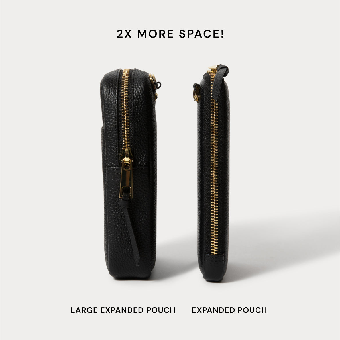 By popular demand, we’re now offering a larger version of our add-on expanded pouch! With dimensions of 4.5” W x 7” H x 2” D, it’s designed to hold all of your essentials. Featuring both an exterior and interior slip pocket for added convenience.