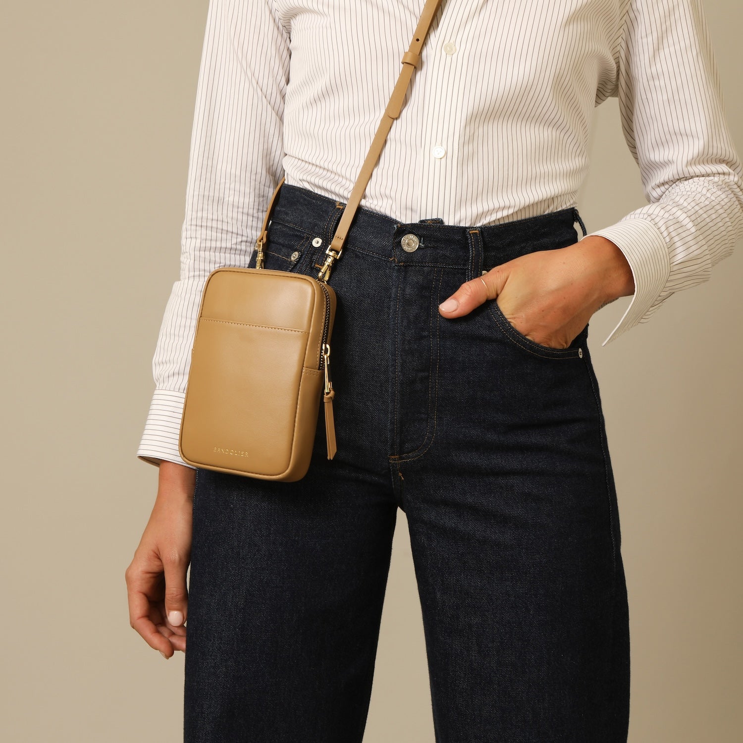 Donna Crossbody with Large Expanded Pouch in Tan/Gold