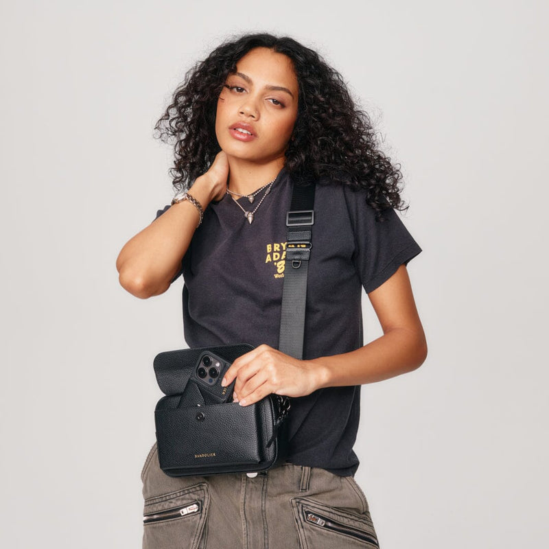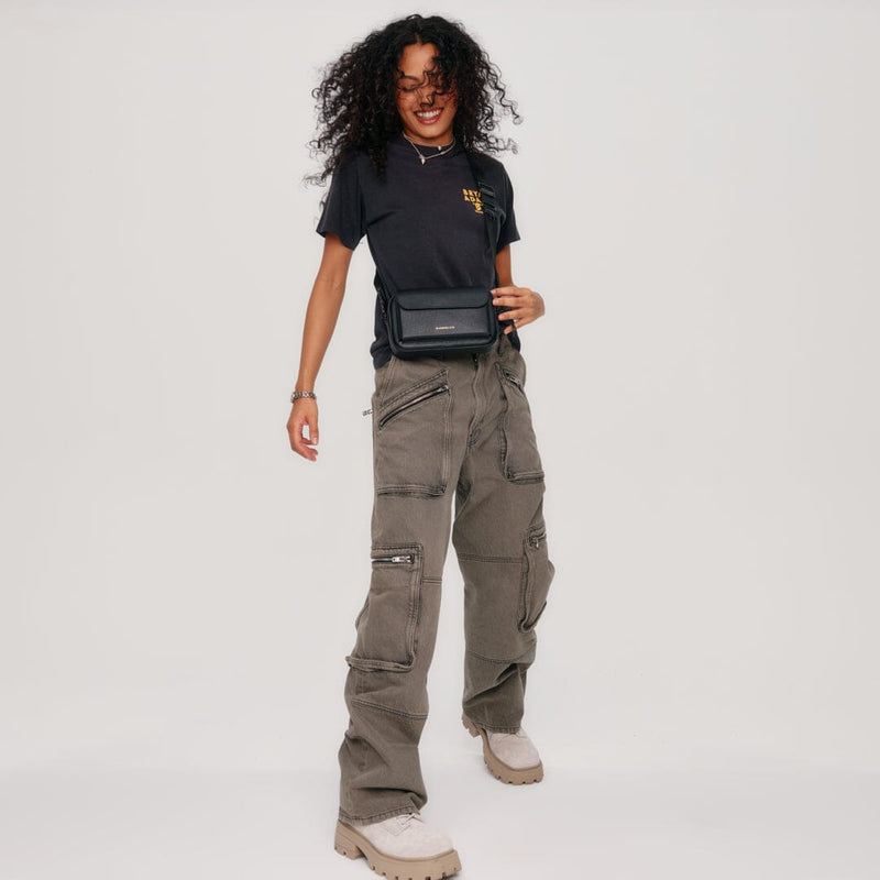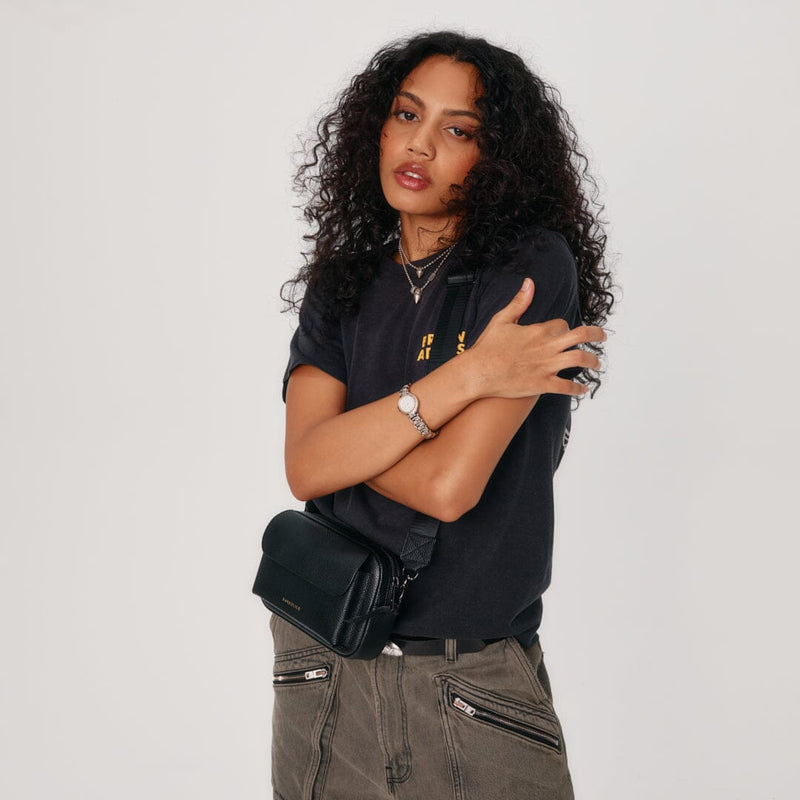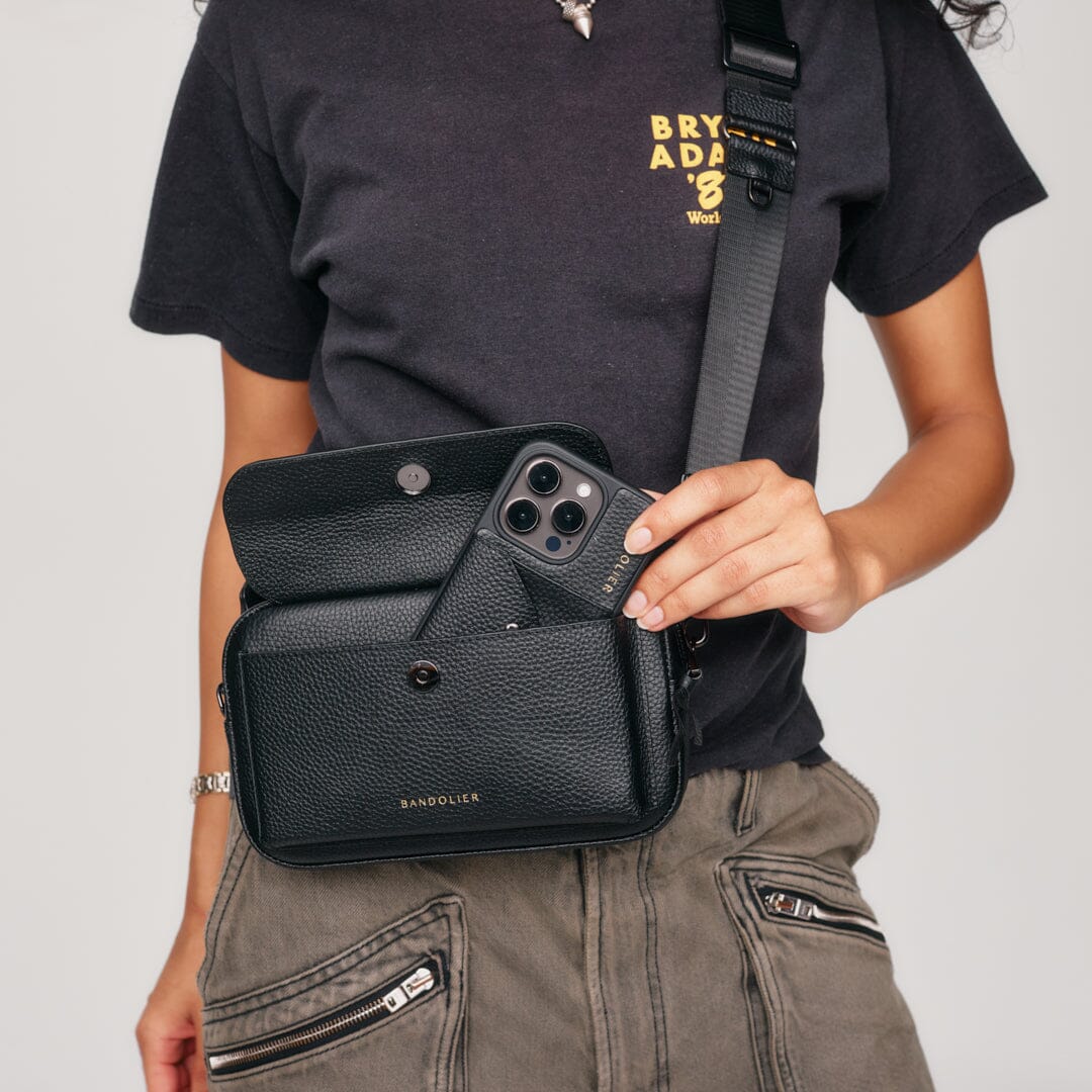 Top Grain Leather Crossbody Bag in Black/Pewter