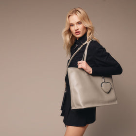 Mini Heart Pouch - Greige/Silver Fashion Pouch Bandolier