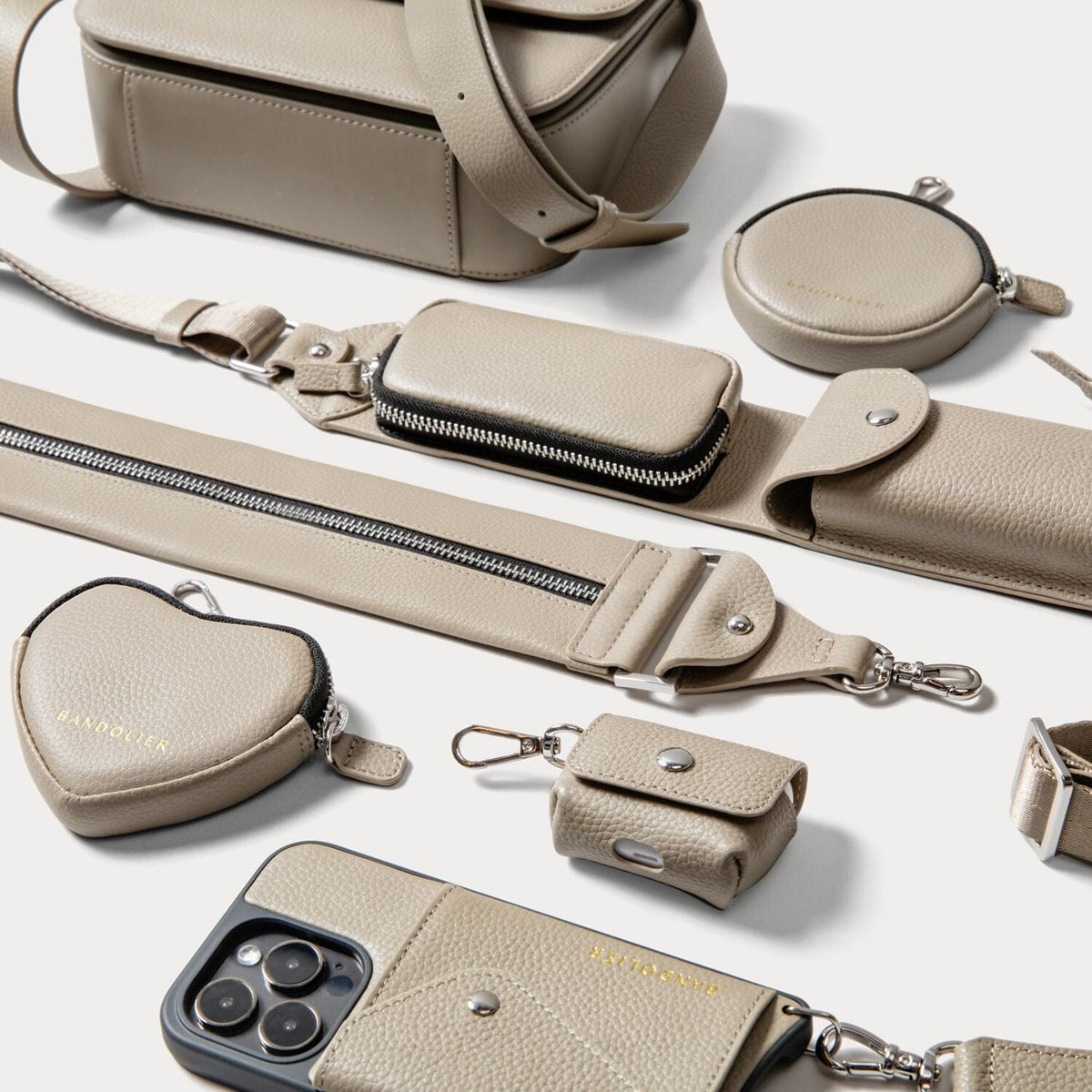 Top Grain Leather Clip-On Pouch in Greige/Silver