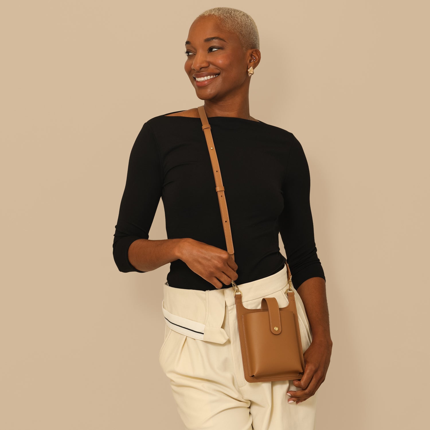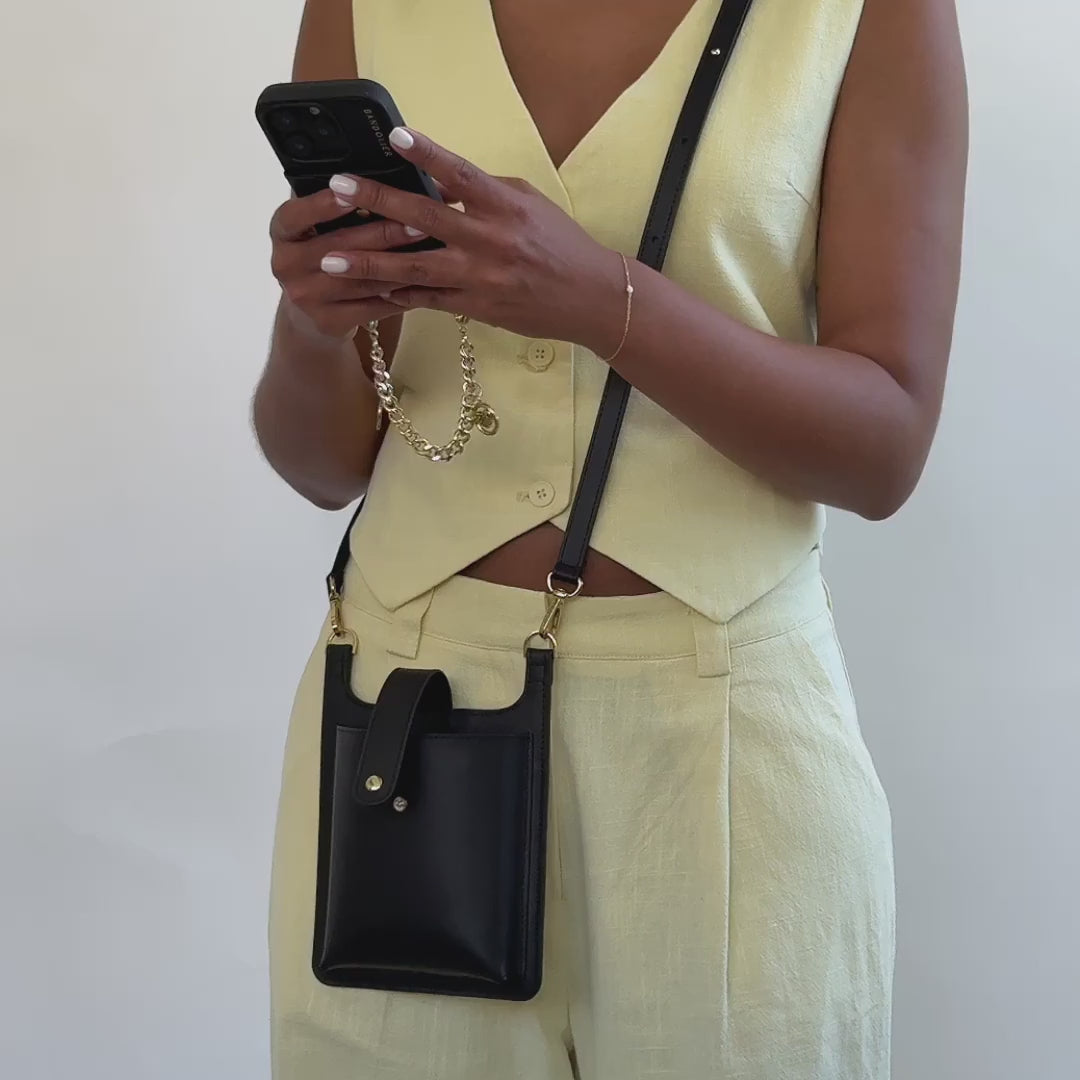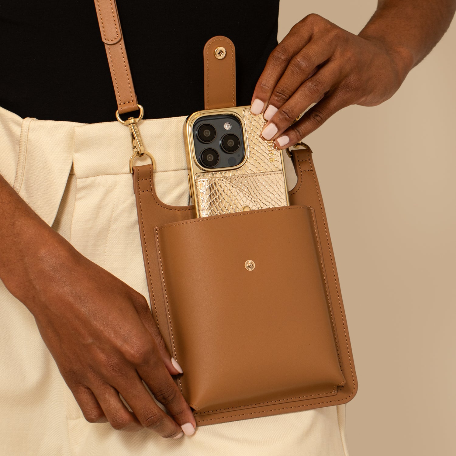Meet the Parker Phone Bag — your sleek solution for on-the-go essentials. Crafted for hands-free ease, it features a streamlined silhouette with a dedicated exterior pouch for your phone, a discreet back zip pocket for cards, cash, and ID, an adjustable crossbody strap, and luxe leather details that make everyday carry feel effortlessly elevated.